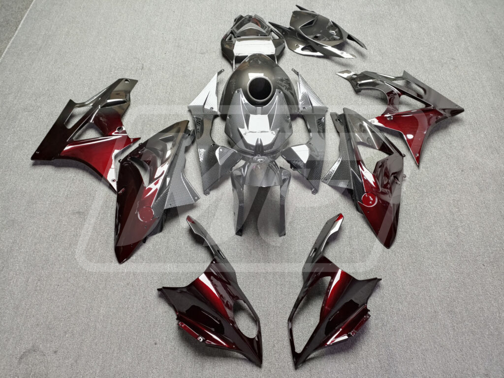 BMW S1000RR 2009-2014 Gloss Maroon Red & Metallic Black Carbon Fiber ABS Fairings | Monster Fairings
