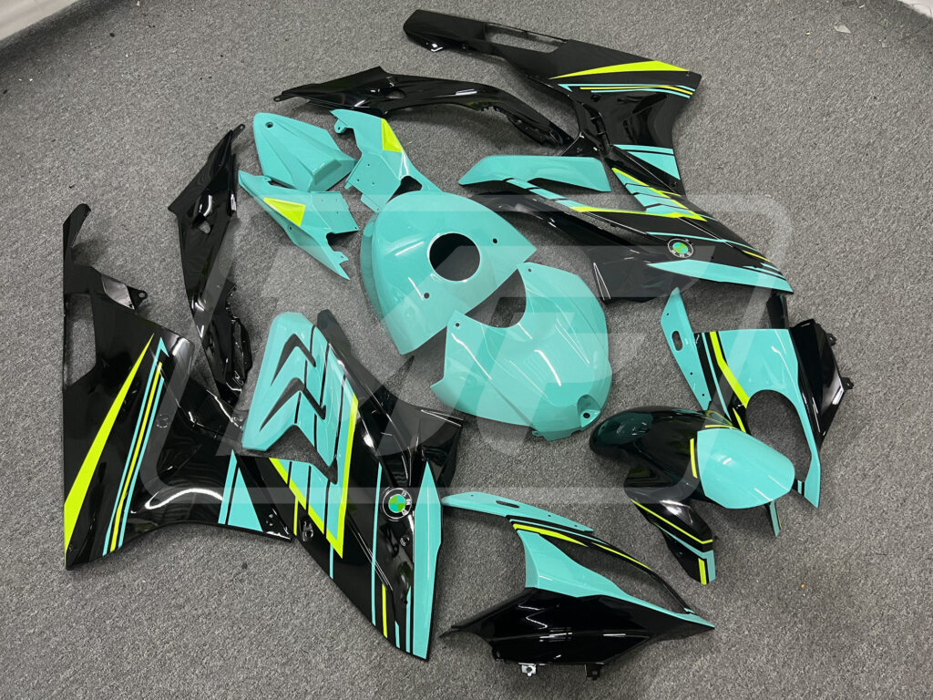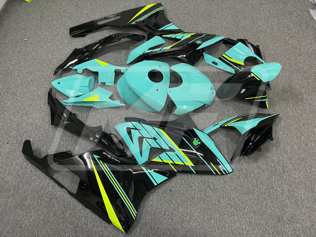 (IN STOCK) BMW S1000RR 2015-2016 Gloss Aqua & Black with High Vis Yellow ABS Fairings | Monster Fairings