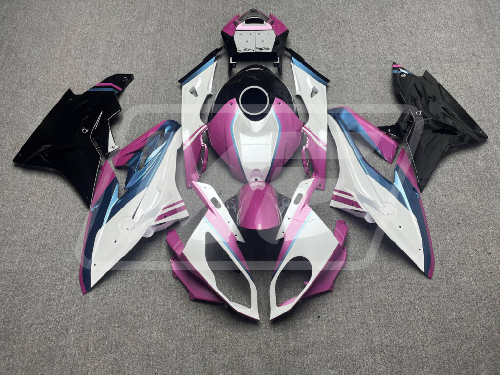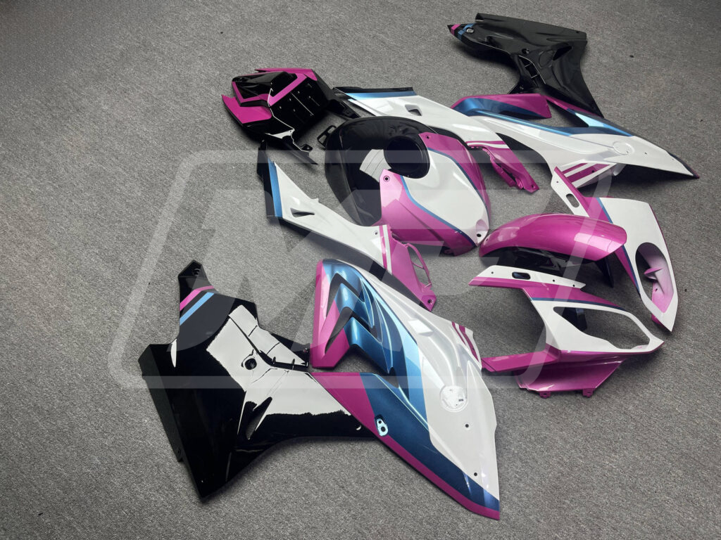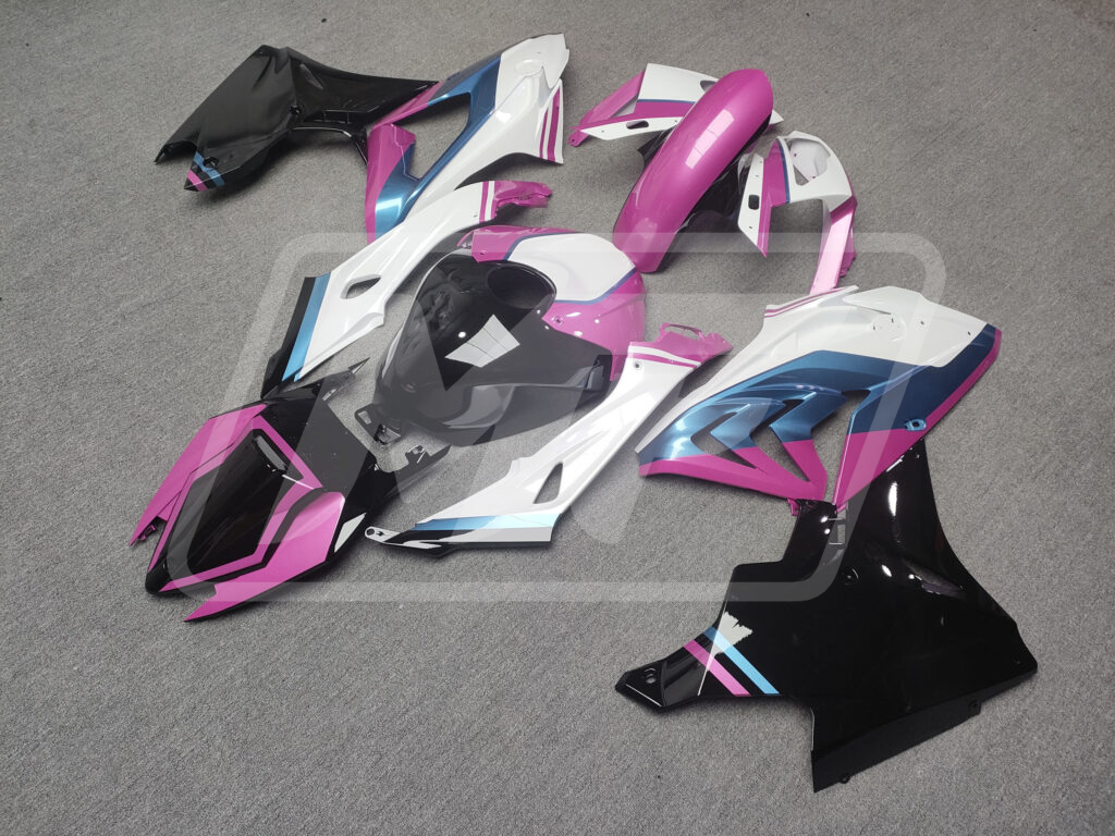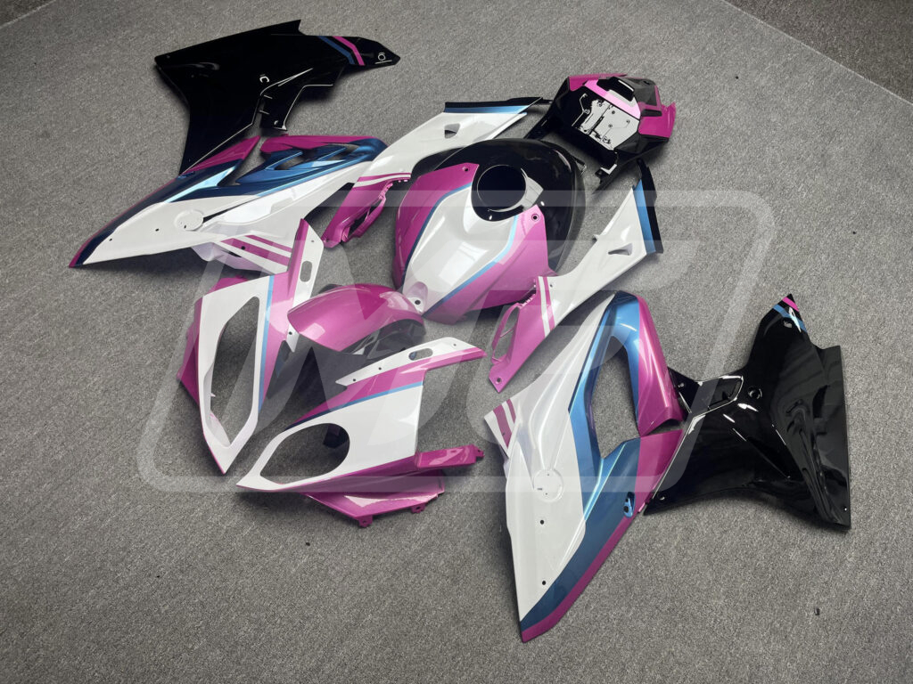 BMW S1000RR 2017-2018 Gloss White & Pink with Black & Teal ABS Fairings | Monster Fairings