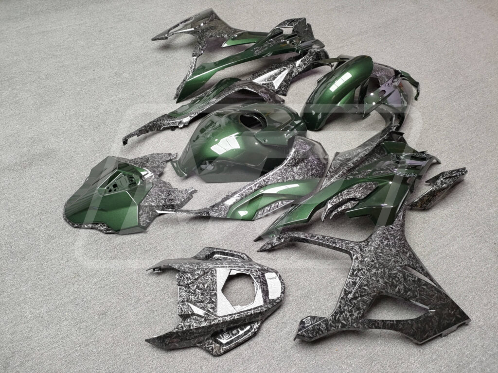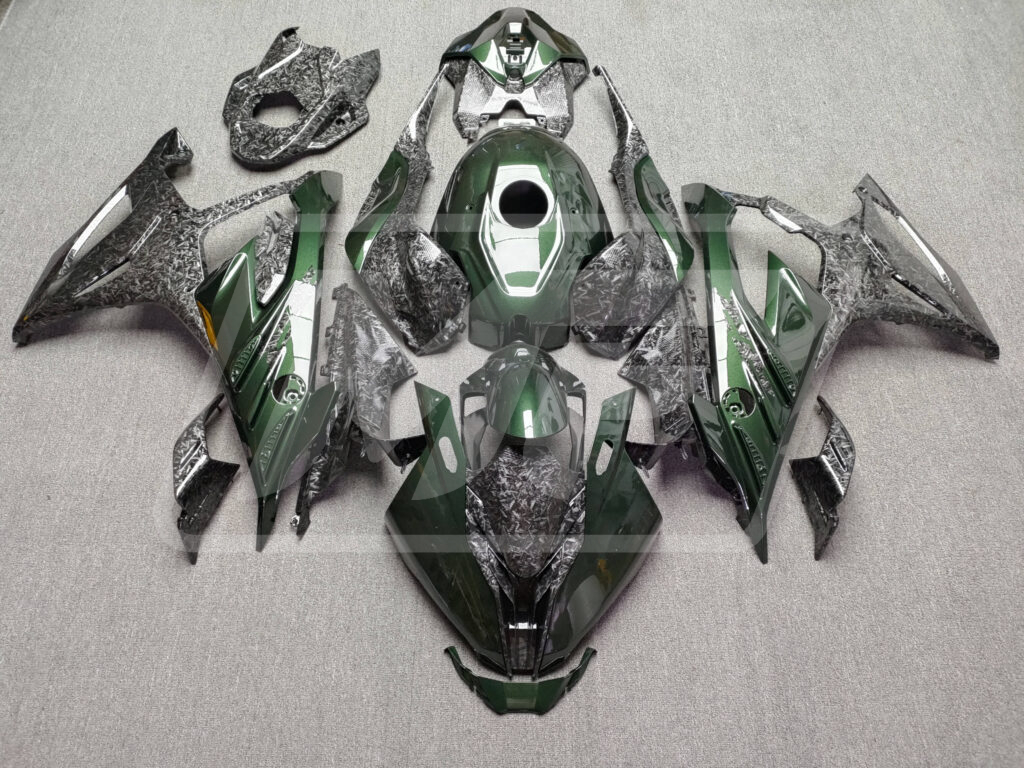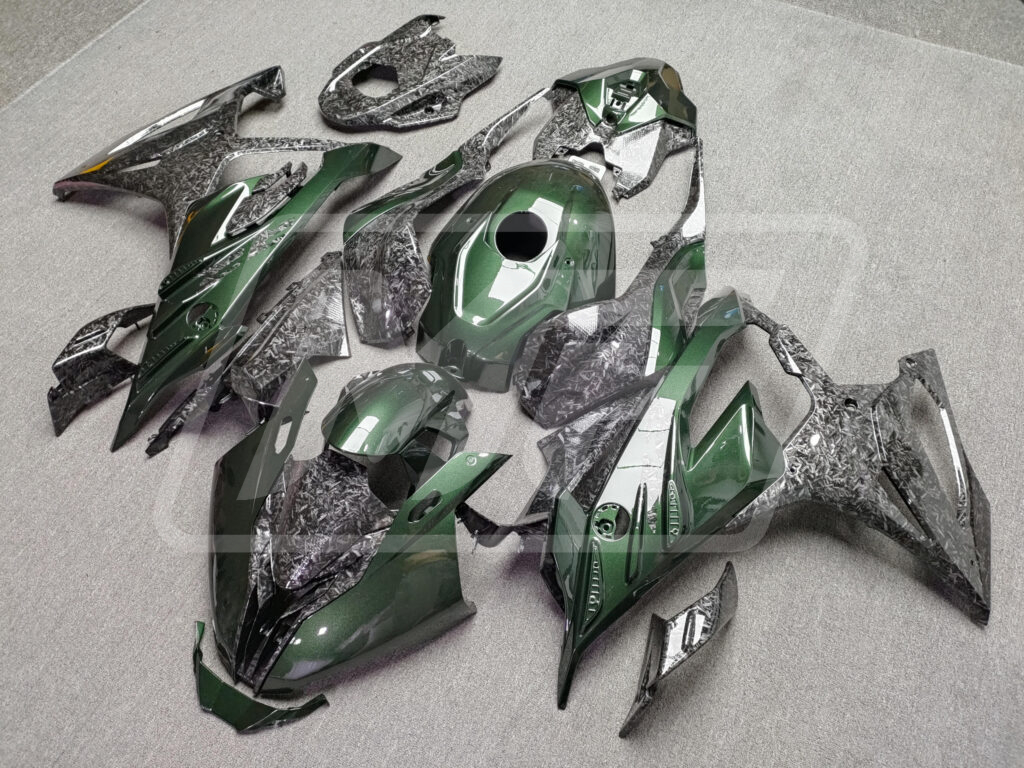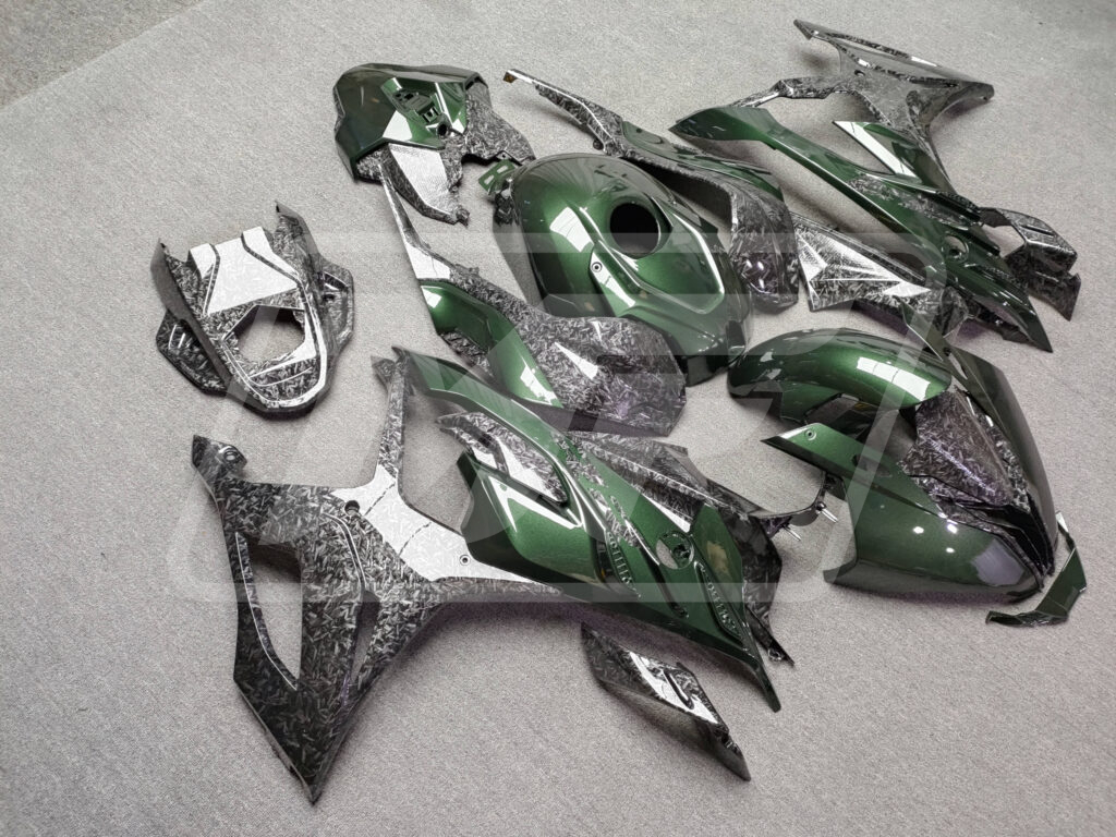 BMW S1000RR 2023-2024 Gloss Forged Carbon Fiber Style & Green ABS Fairings | Monster Fairings