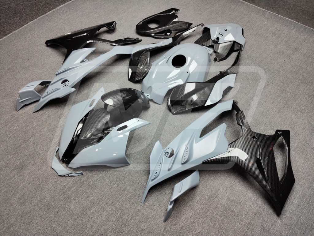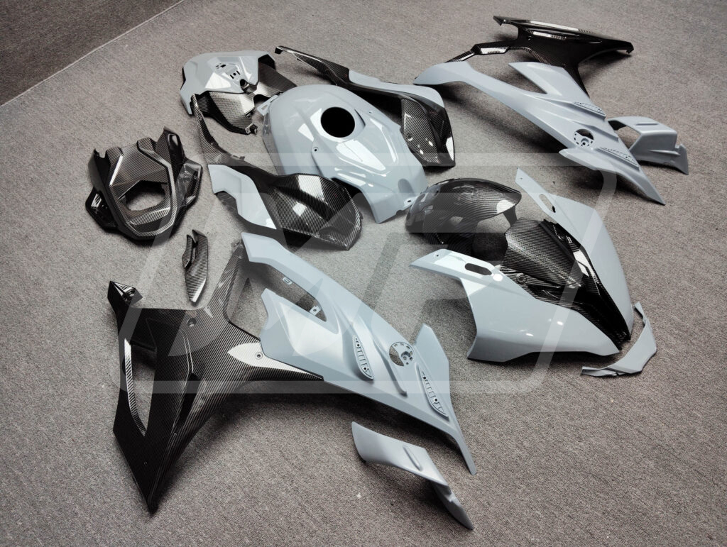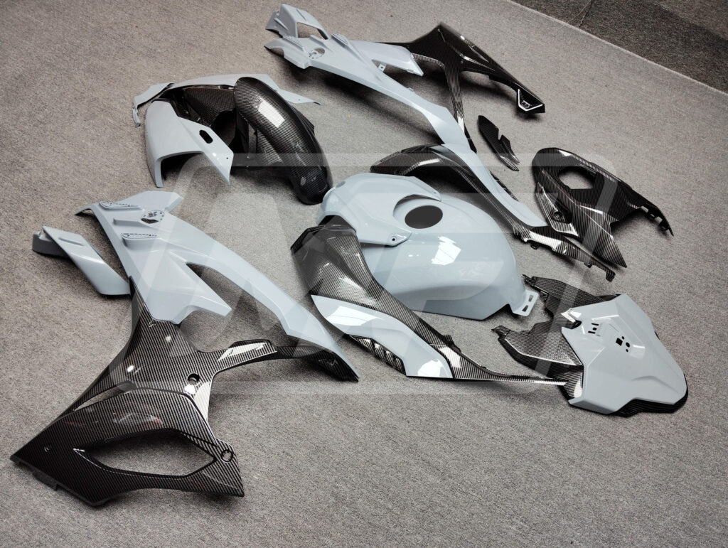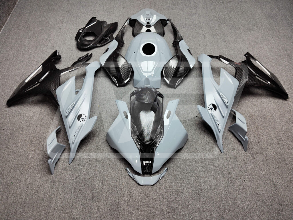 BMW S1000RR 2023-2024 Gloss Nardo Gray with Carbon Fiber Style ABS Fairings | Monster Fairings