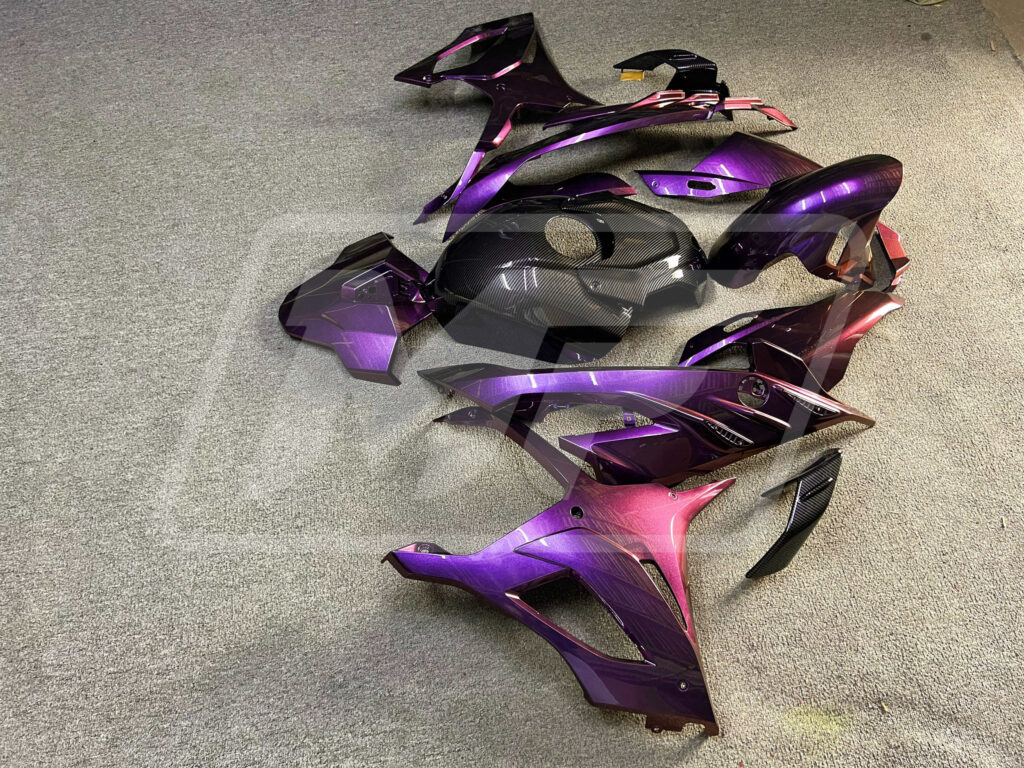 BMW S1000RR 2023-2024 Gloss Pink & Purple Iridescent with Carbon Fiber Style ABS Fairings | Monster Fairings