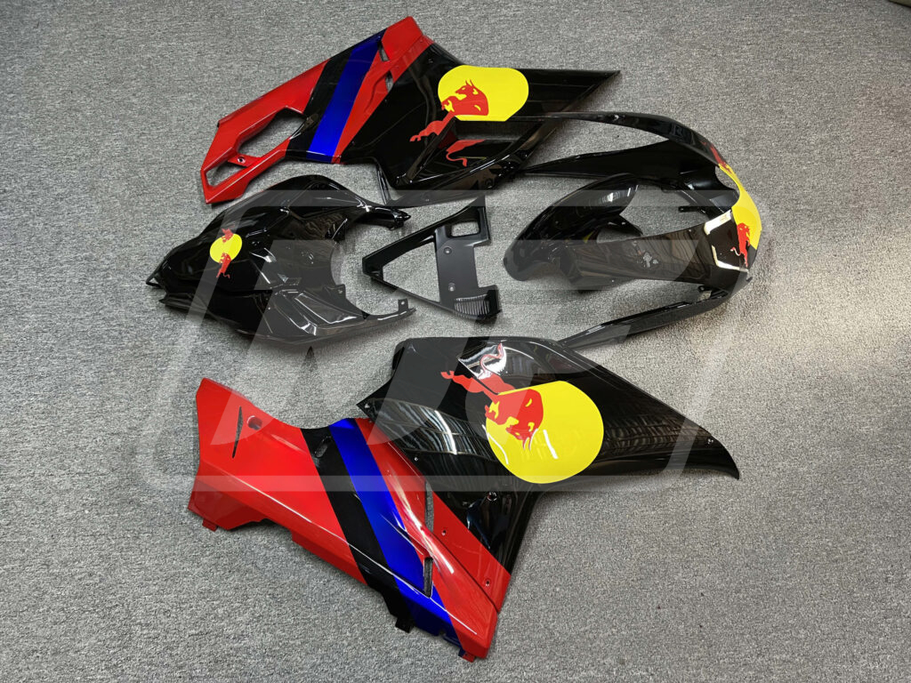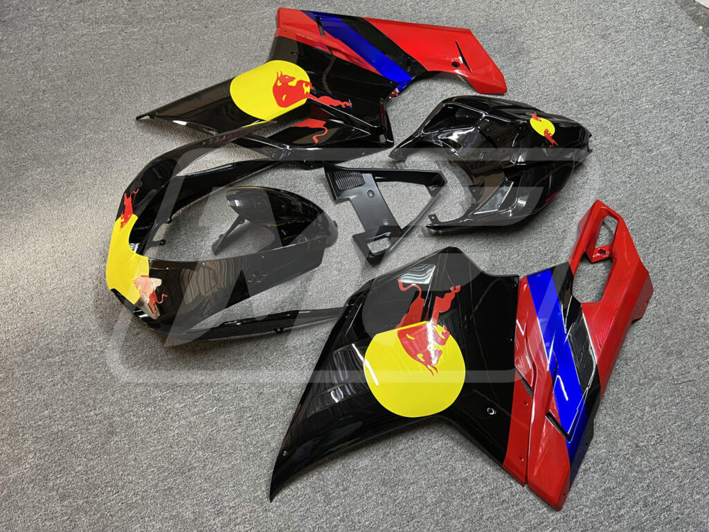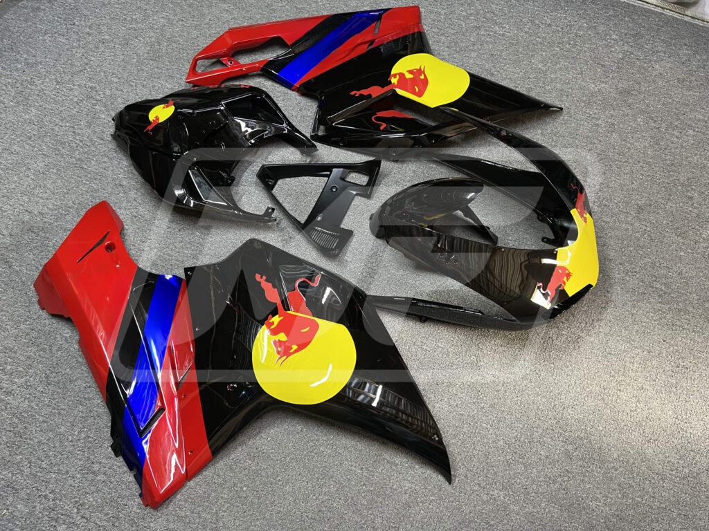 Ducati 848 1098 1198 2007-2012 Gloss Black & Red with Yellow Bull ABS Fairings | Monster Fairings