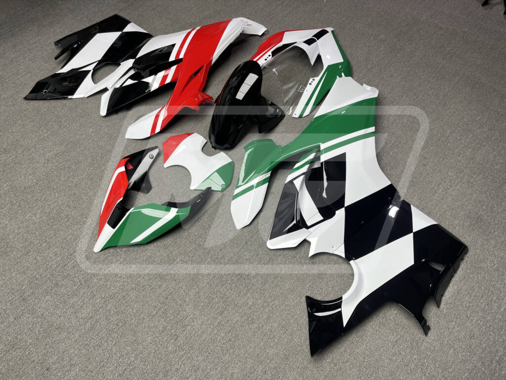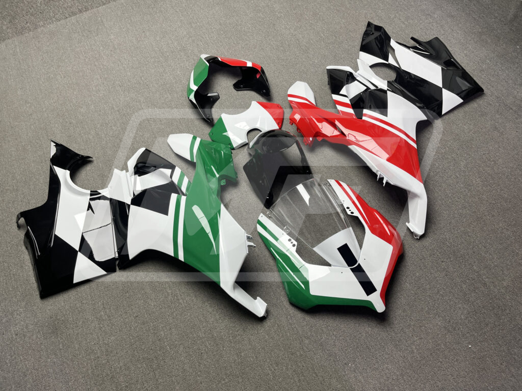 (IN STOCK) Ducati Panigale V4 2018-2019 Gloss White & Black with Red & Green ABS Fairings | Monster Fairings