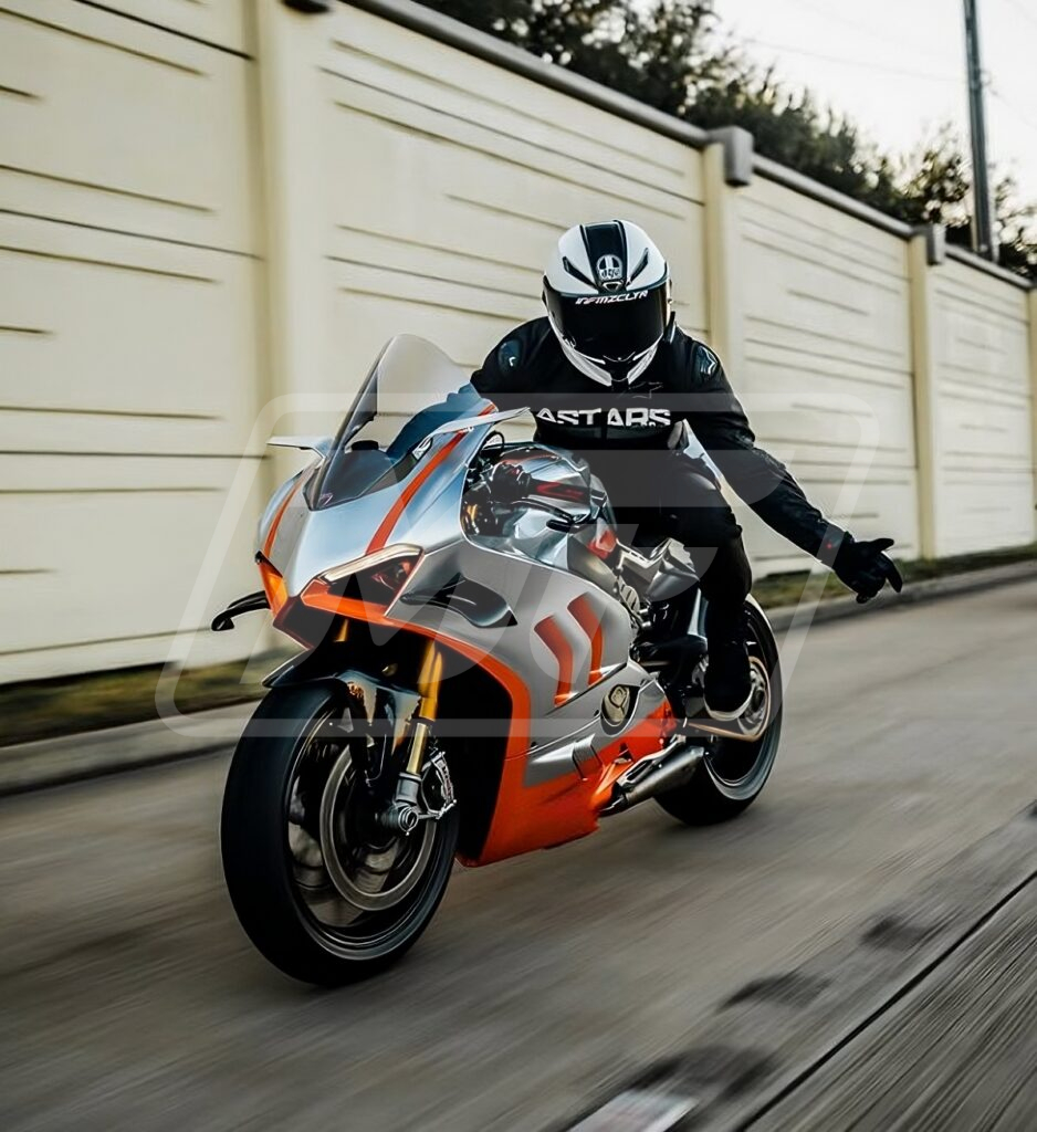 Ducati Panigale V4/V4S 2022-2024 Gloss Silver & Black with Orange ABS Fairings | Monster Fairings