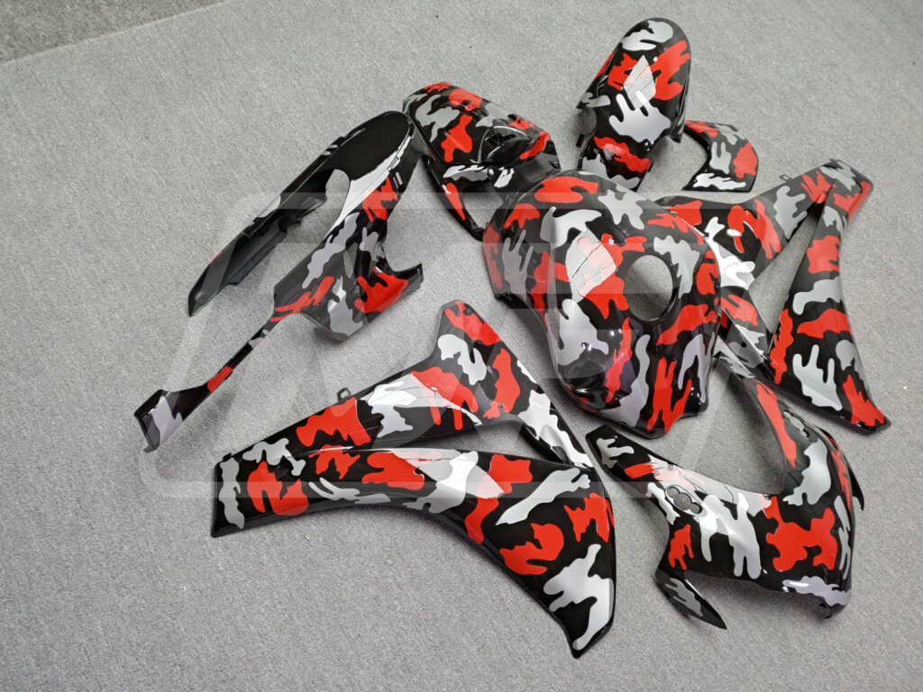 Honda CBR1000RR 2008-2011 Gloss Black with Red & Silver Camo ABS Fairings | Monster Fairings