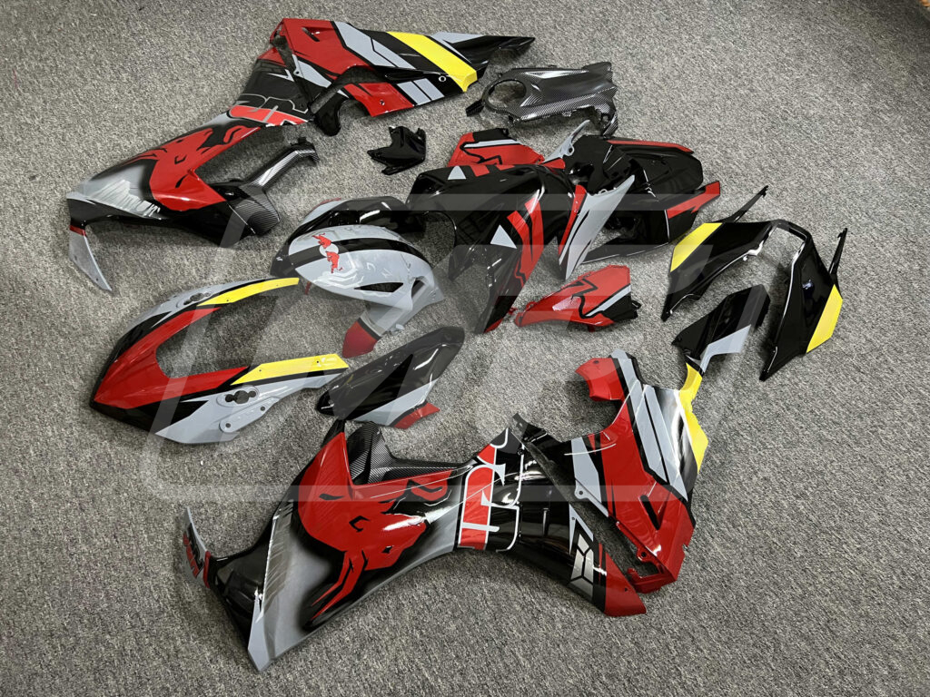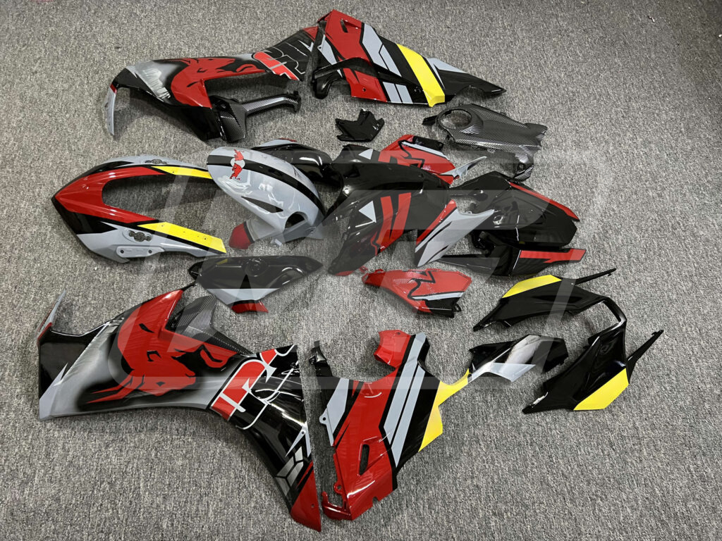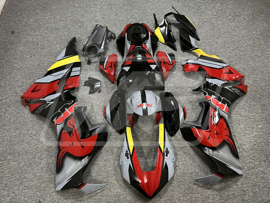 Honda CBR1000RR 2017-2026 Gloss Gray & Black with Yellow & Red Bull with Carbon Fiber Style ABS Fairings | Monster Fairings