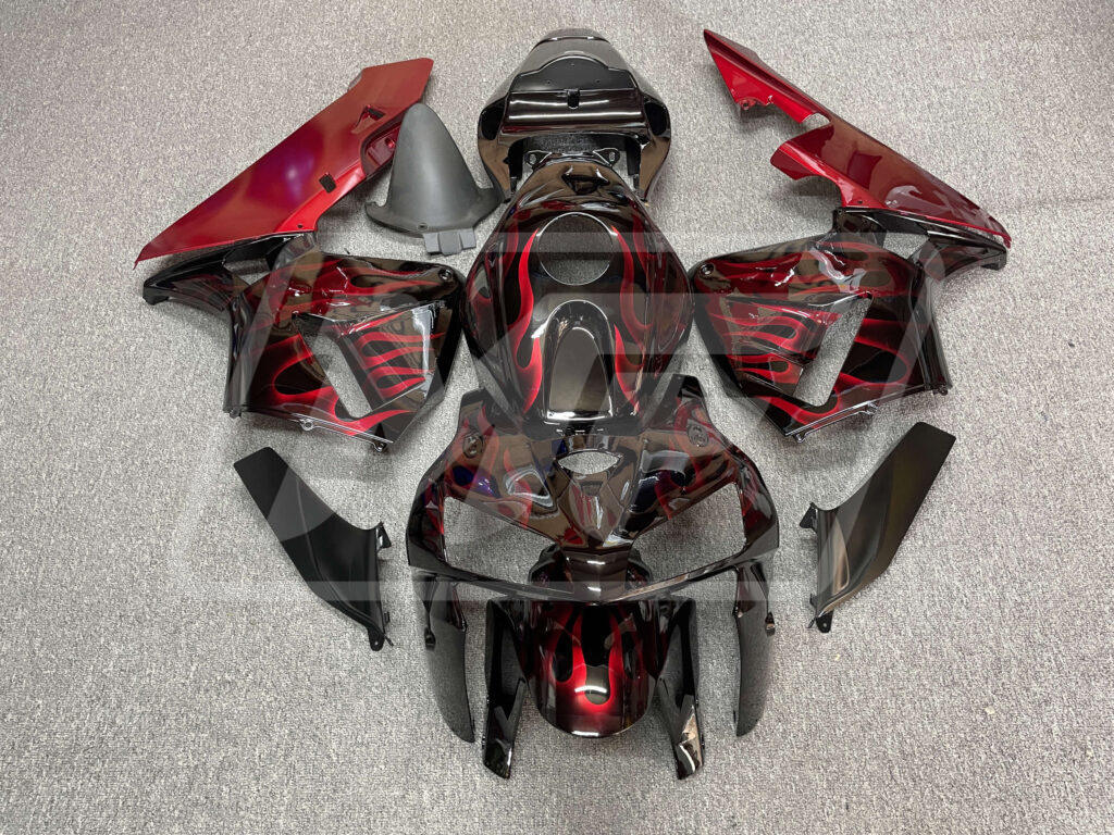 Honda CBR600RR 2005-2006 Gloss Black & Red Flames ABS Fairings | Monster Fairings