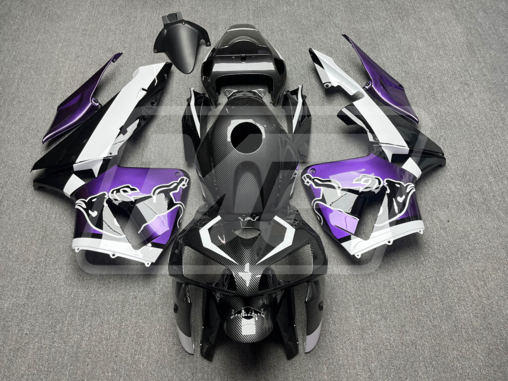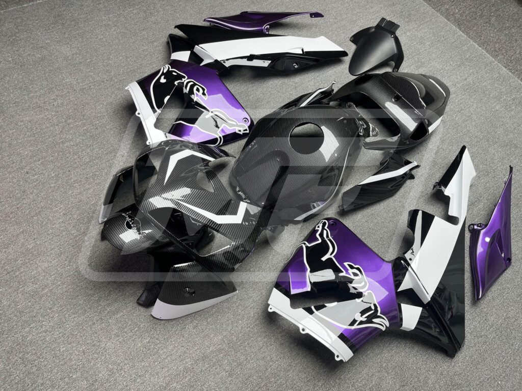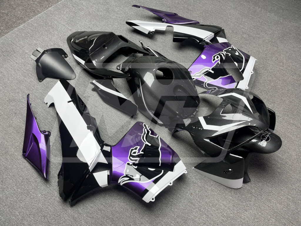 Honda CBR600RR 2005-2006 Gloss Carbon Fiber Style with Purple & White Bull ABS Fairings | Monster Fairings