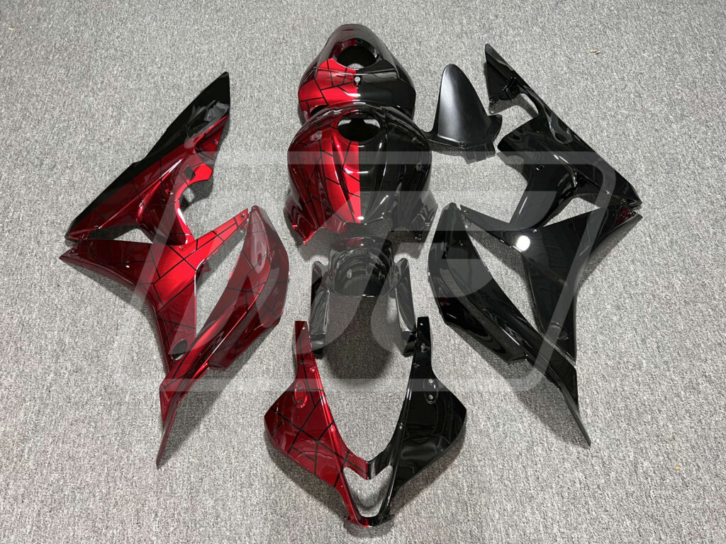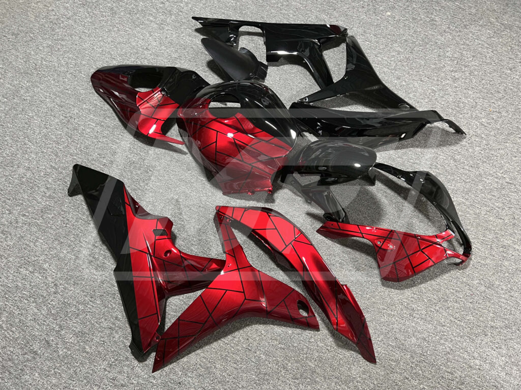 (IN STOCK TX) Honda CBR600RR 2007-2008 Gloss Candy Red & Black Pattern Split ABS Fairings | Monster Fairings