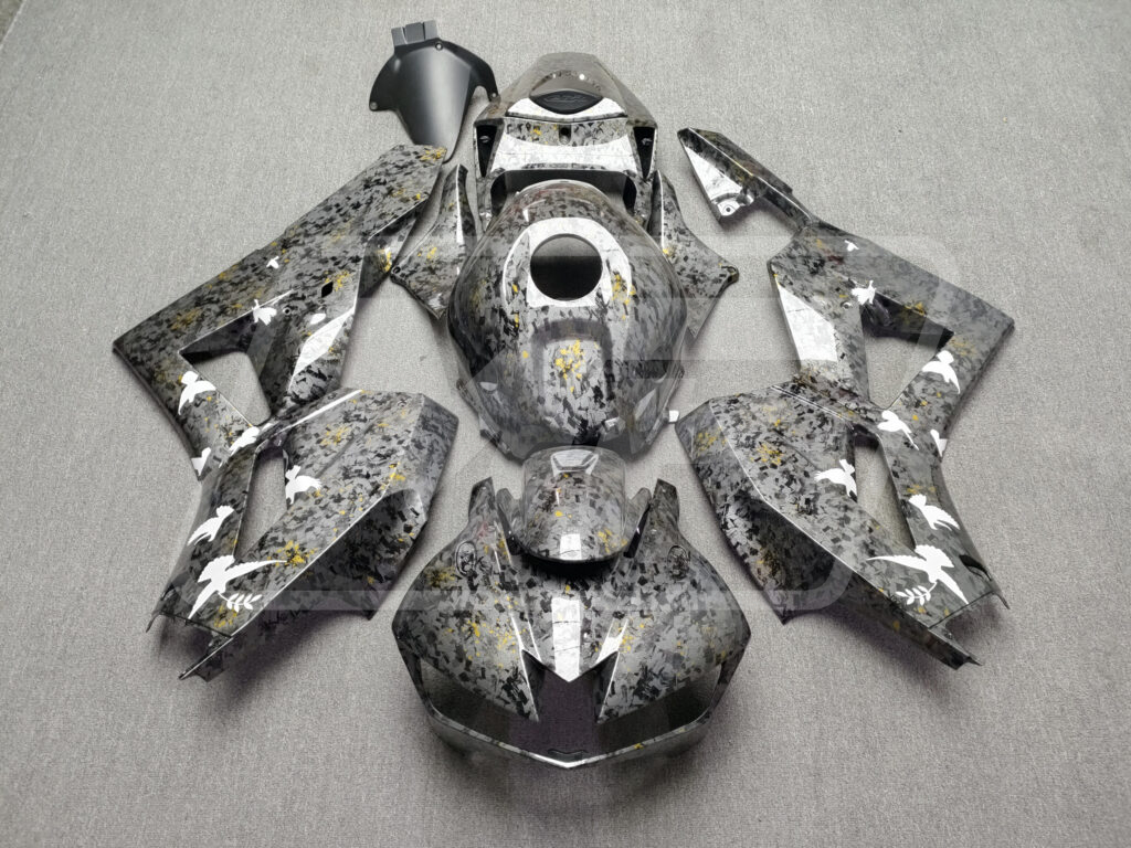 Honda CBR600RR 2013-2026 Gloss Black & Gold Forged Carbon Fiber Style with White ABS Fairings | Monster Fairings