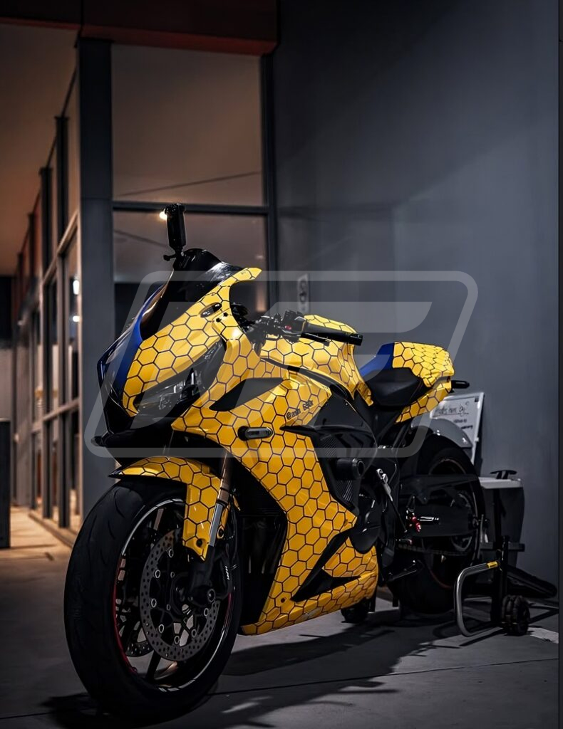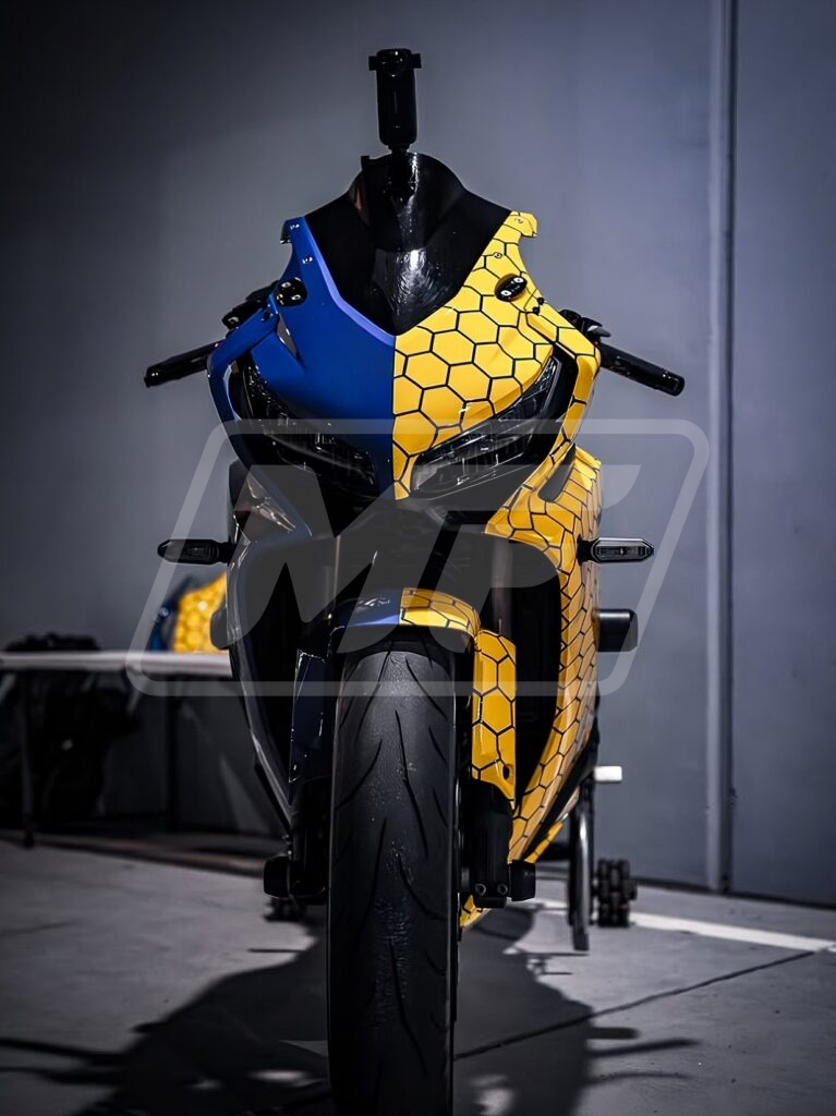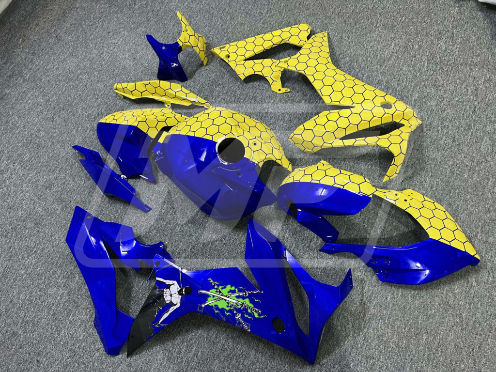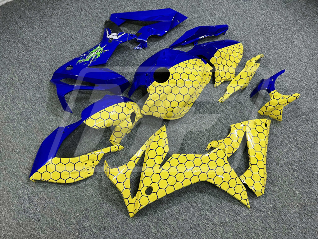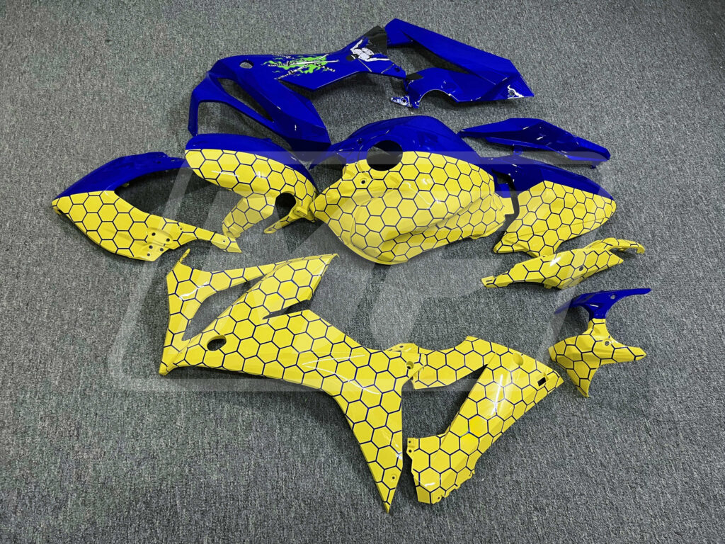 Honda CBR650R 2021-2023 Gloss Blue & Yellow Honeycomb Pattern Split ABS Fairings | Monster Fairings