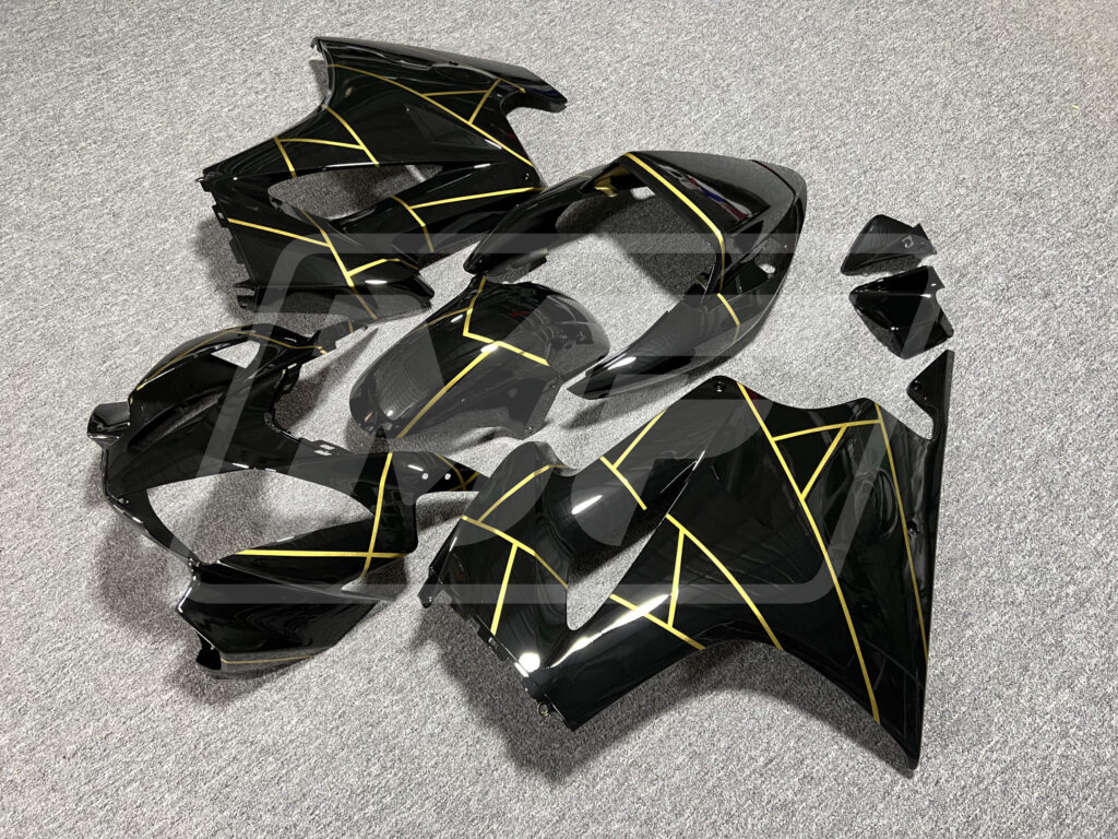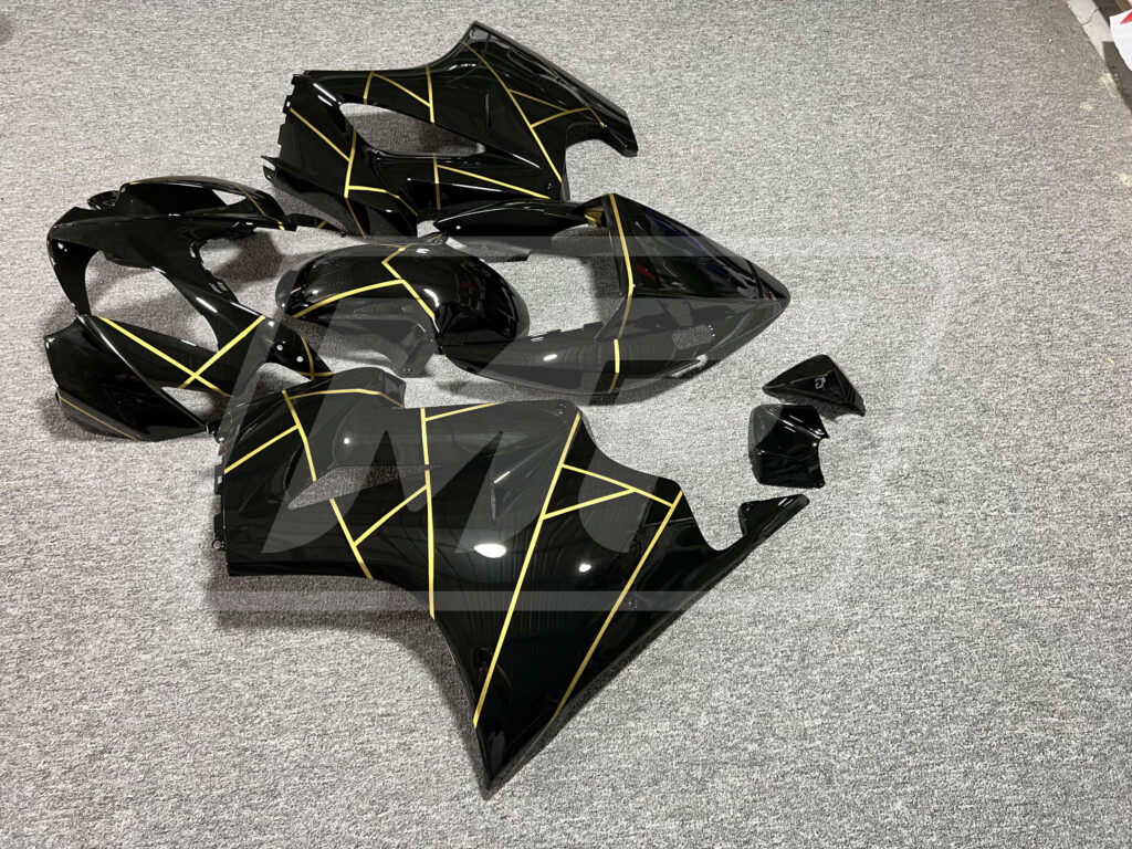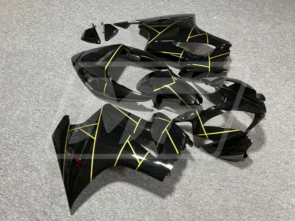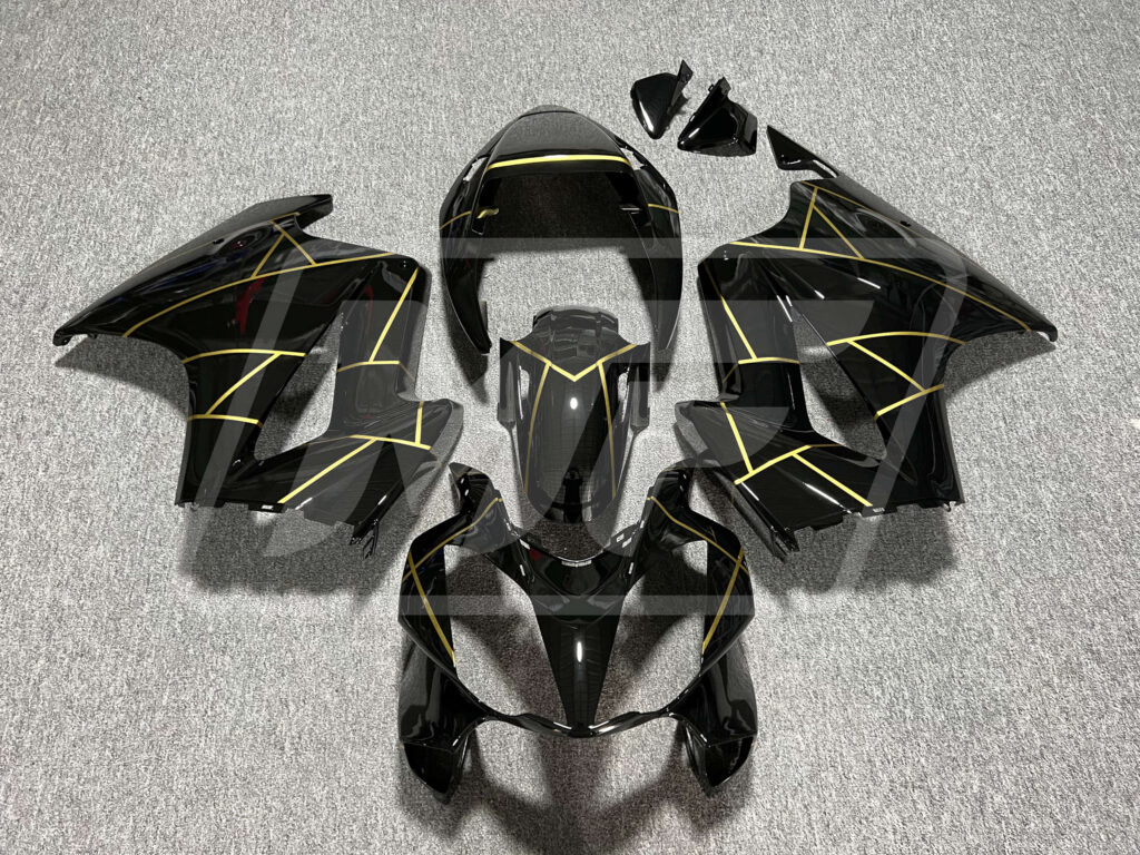 Honda VFR800 2002-2012 Gloss Black with Gold Stripes ABS Fairings | Monster Fairings