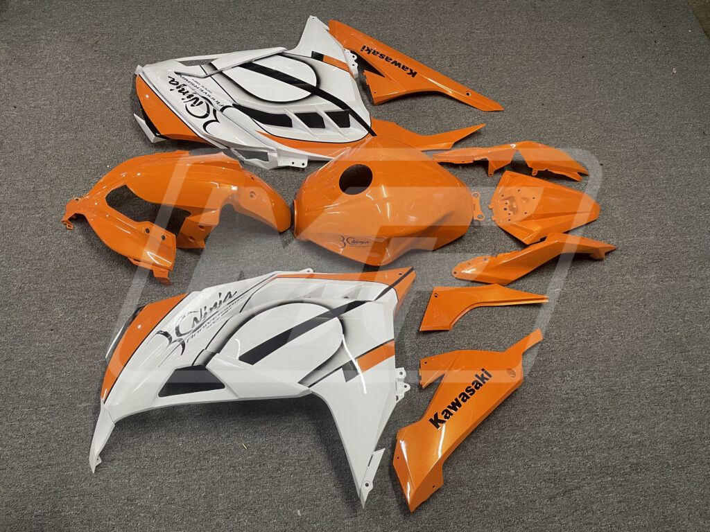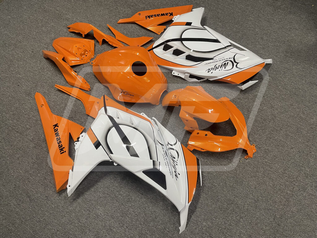 (IN STOCK) Kawasaki Ninja 300 2013-2022 Gloss Orange with White & Black ABS Fairings | Monster Fairings