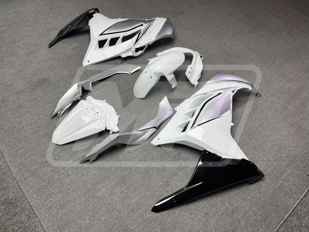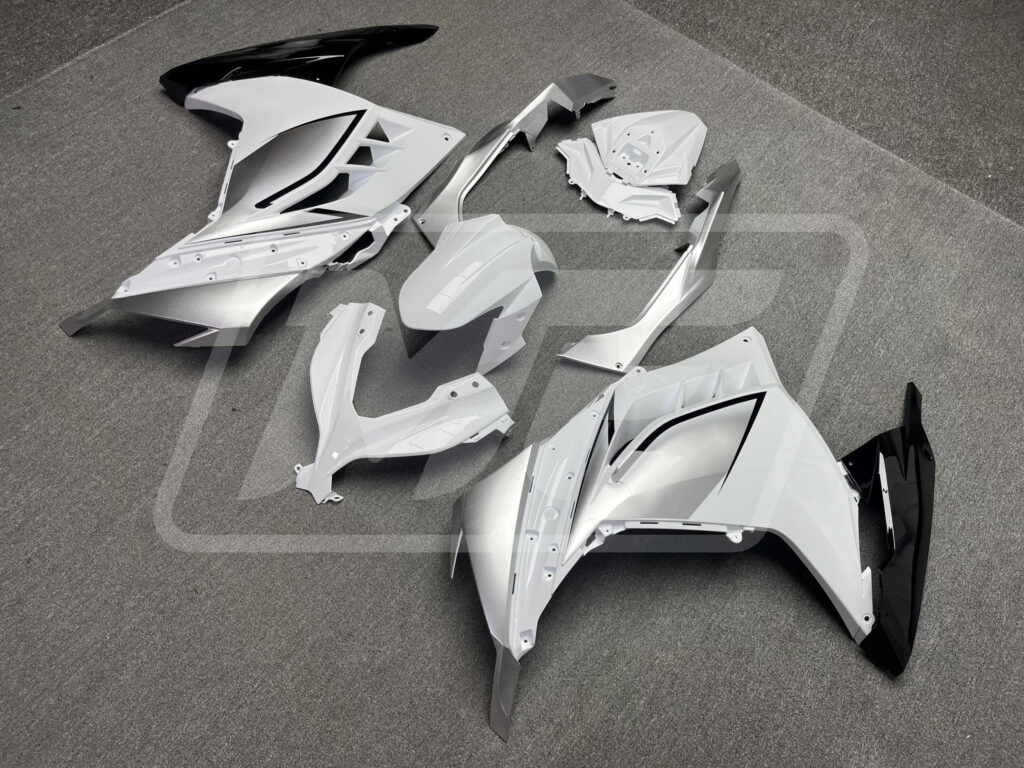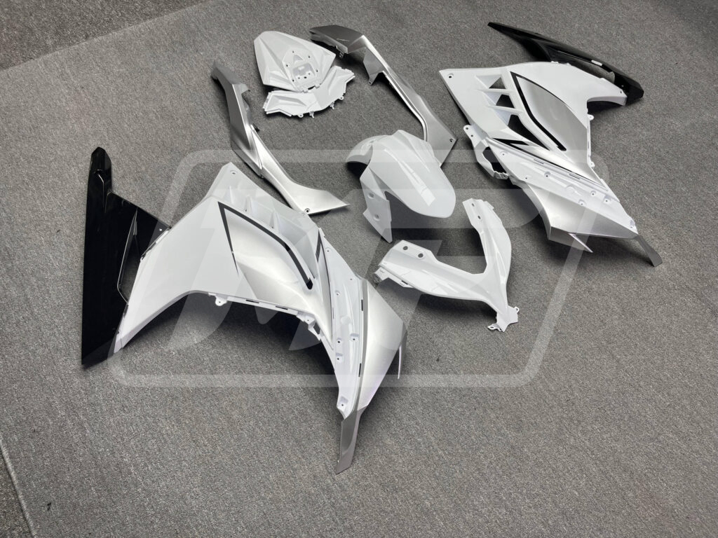 Kawasaki Ninja 300 2013-2022 Gloss White & Silver with Black ABS Fairings | Monster Fairings