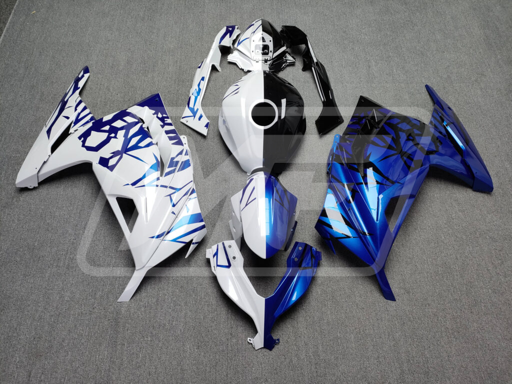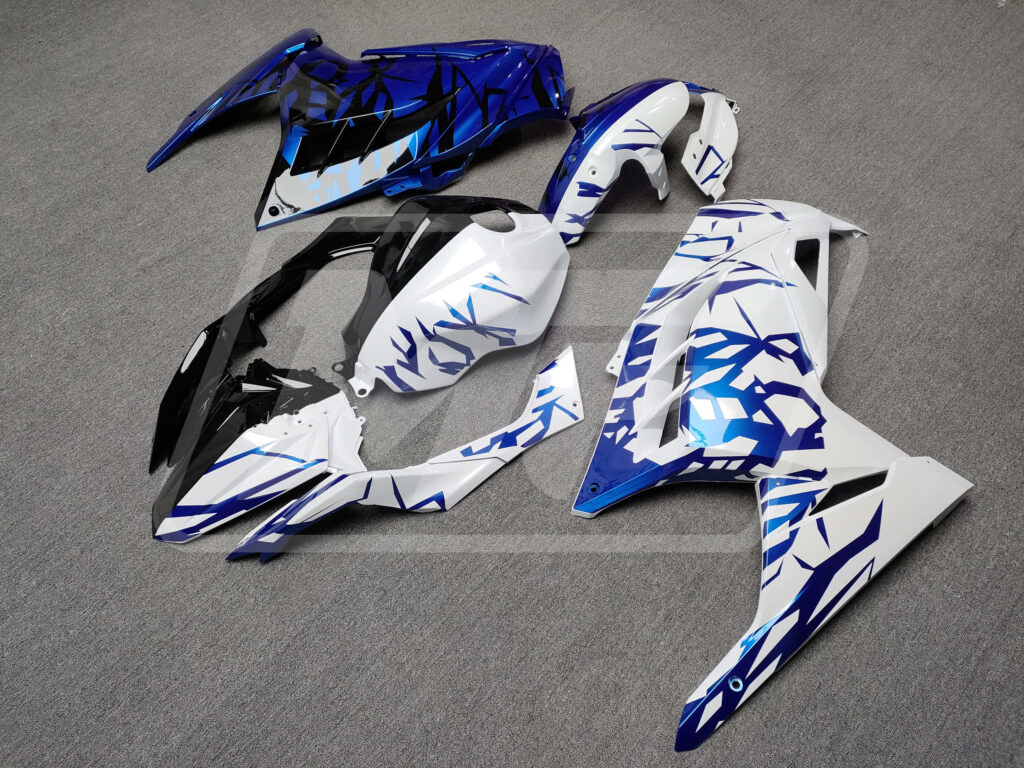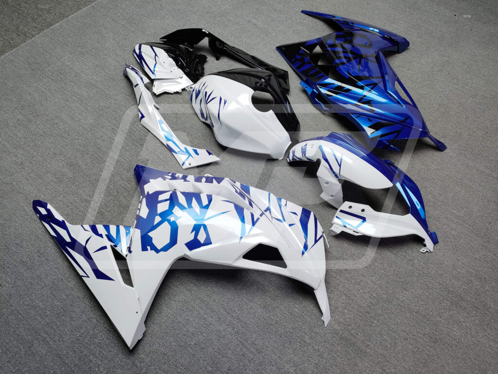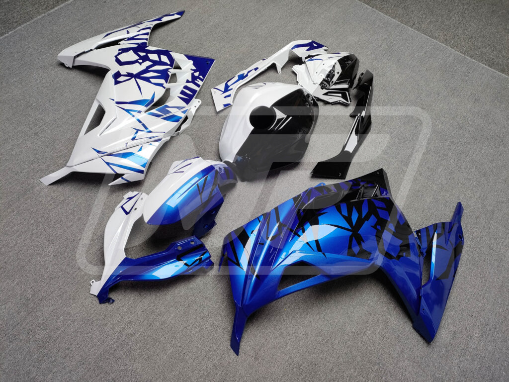 Kawasaki Ninja 300 2013-2022 Gloss Blue & White with Black Shattered Split ABS Fairings | Monster Fairings