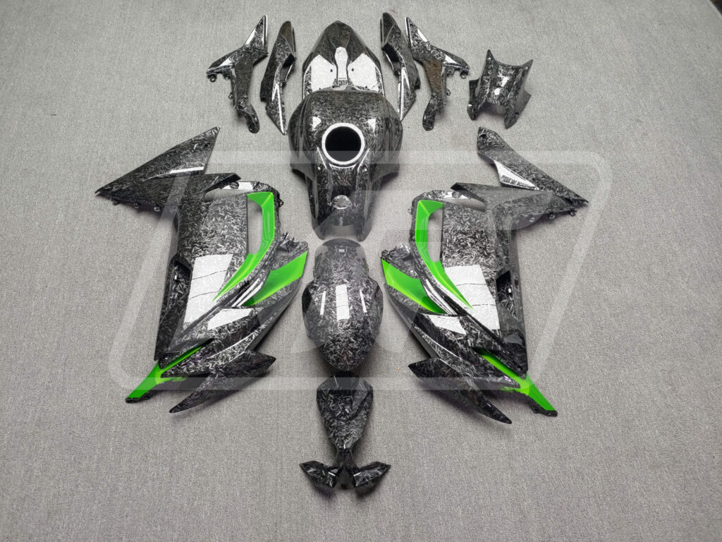 Kawasaki Ninja 650R 2020-2026 Gloss Forged Carbon Fiber Style with Green ABS Fairings | Monster Fairings