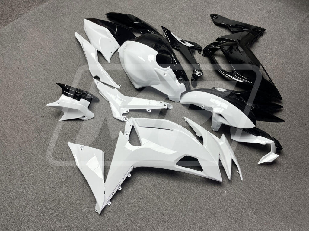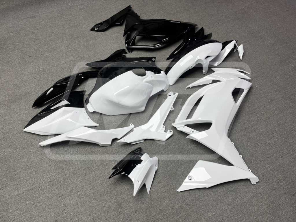 Kawasaki Ninja 650R 2020-2026 Gloss Black & White Split ABS Fairings | Monster Fairings