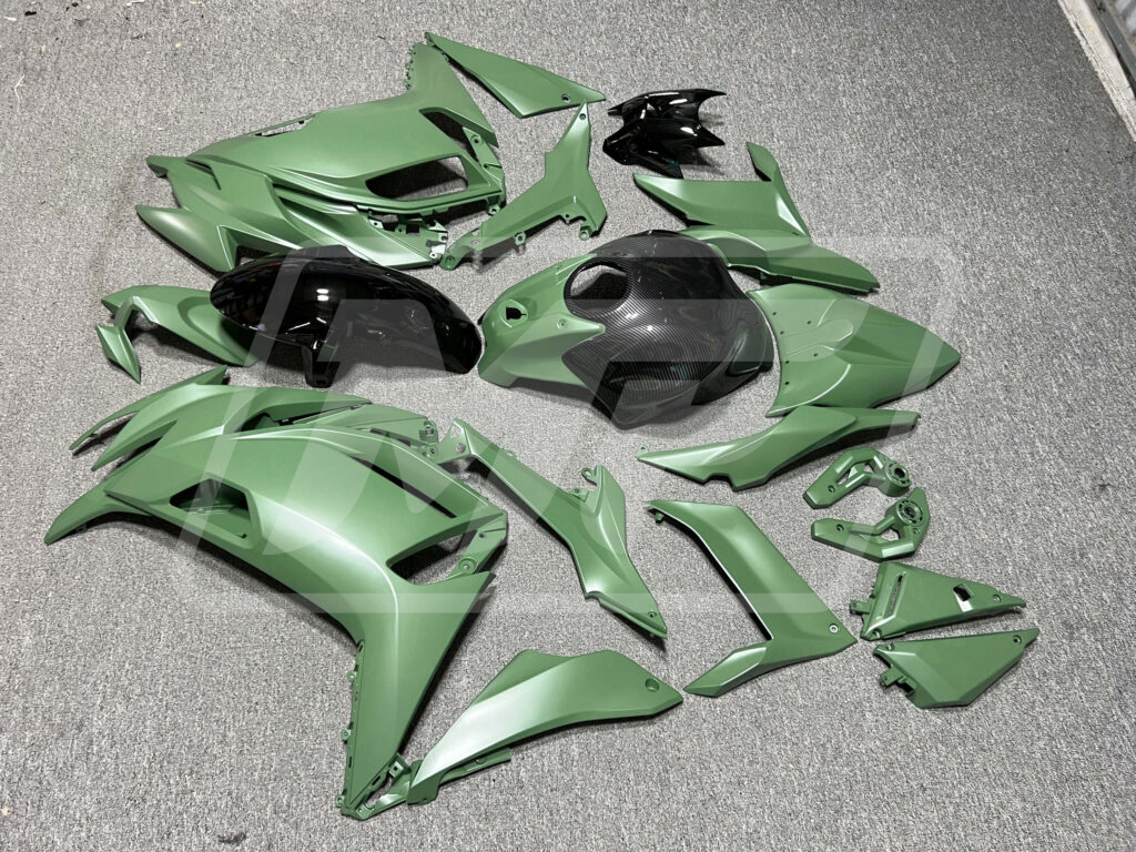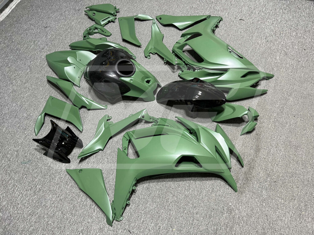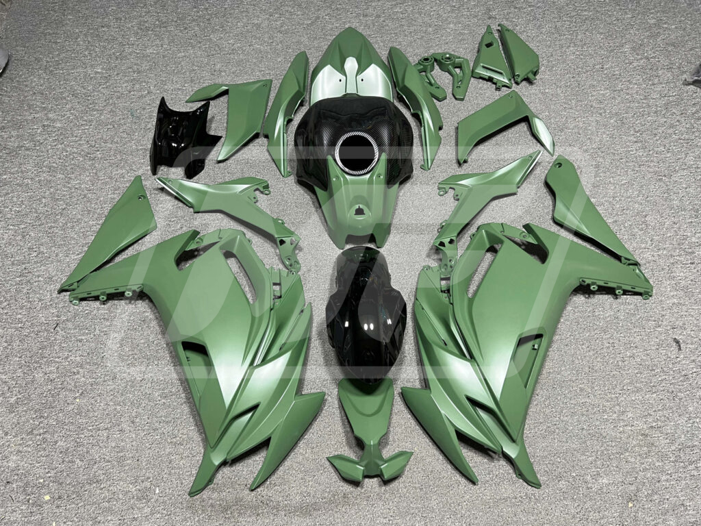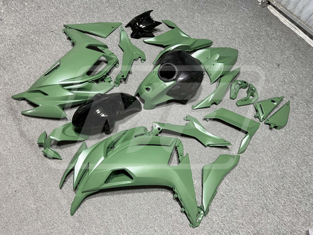 Kawasaki Ninja 650R 2020-2026 Matte Green & Gloss Black with Carbon Fiber Style ABS Fairings | Monster Fairings
