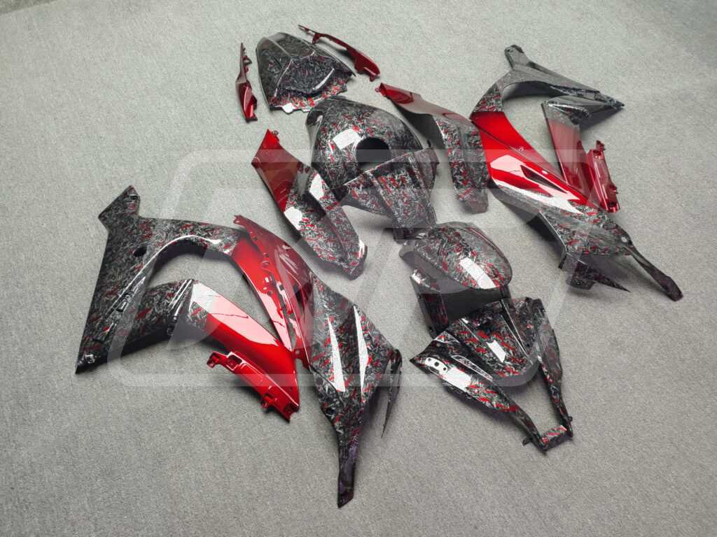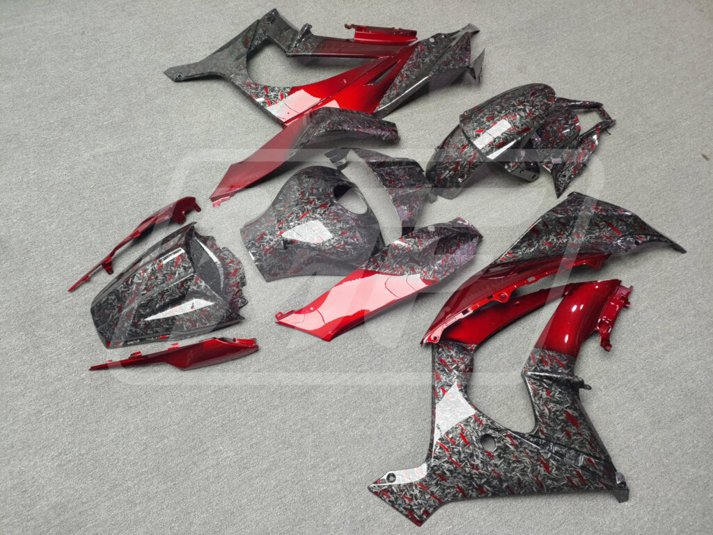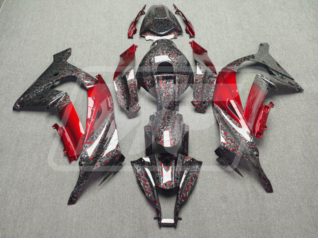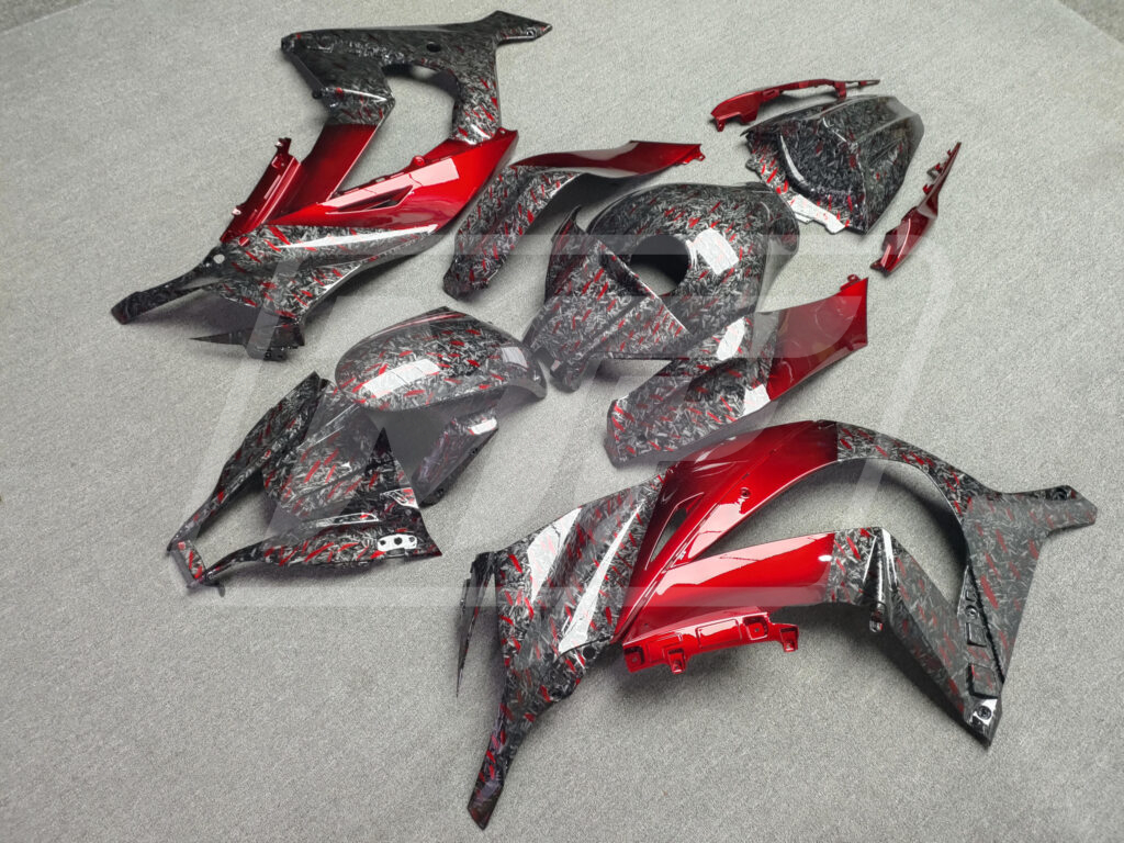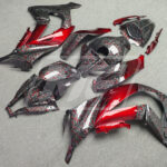 Kawasaki ZX10R 2011-2015 Gloss Forged Carbon Fiber Style with Red ABS Fairings | Monster Fairings