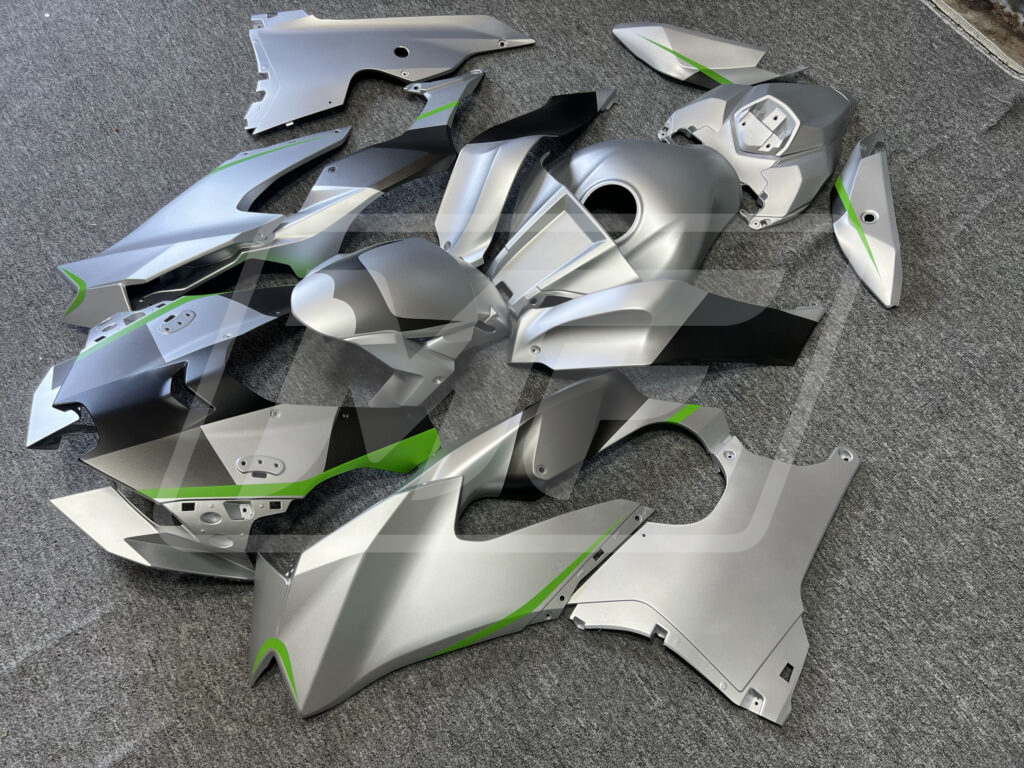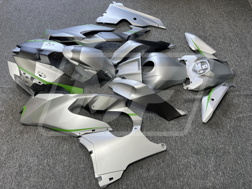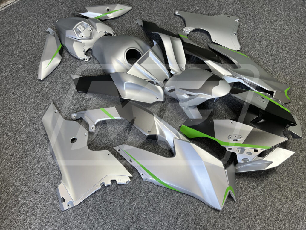 Kawasaki ZX10R 2021-2025 Gloss Silver with Green ABS Fairings | Monster Fairings