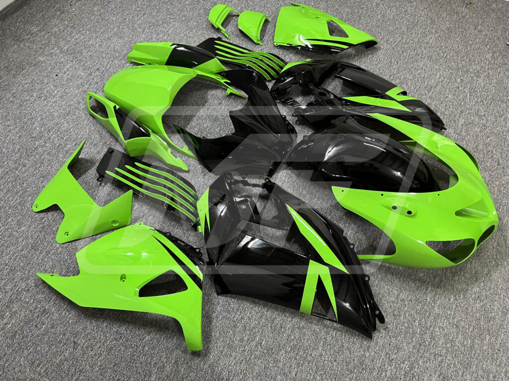 Kawasaki ZX14R 2006-2011 Bright Green with Black ABS Fairings | Monster Fairings