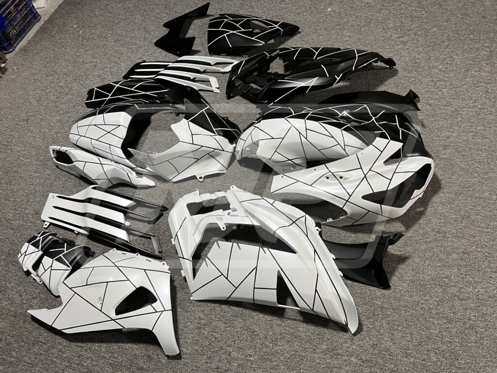 Kawasaki ZX14R 2012-2024 Pearl White & Matte Black Pattern Split ABS Fairings | Monster Fairings