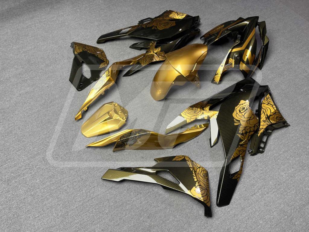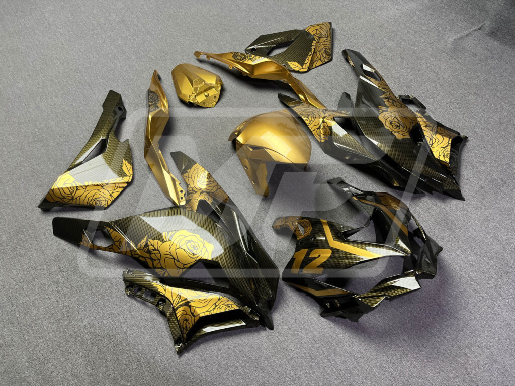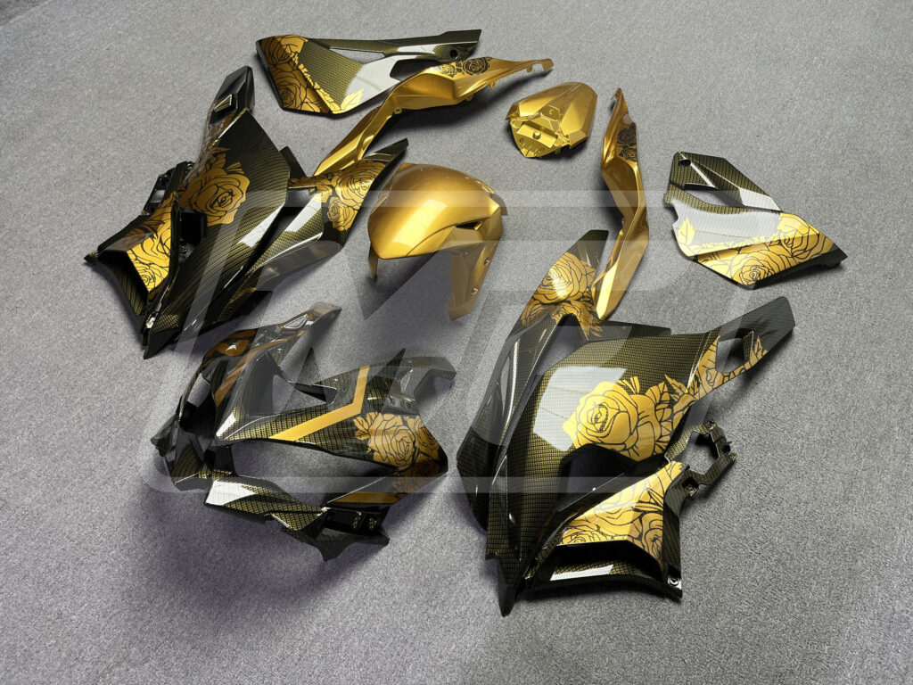 Kawasaki ZX4RR 2020-2025 Gloss Gold Carbon Fiber Style with Gold Roses ABS Fairings | Monster Fairings