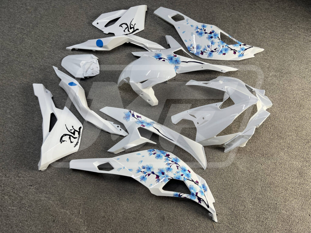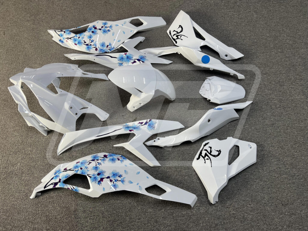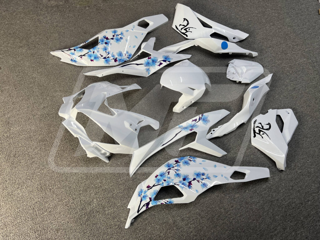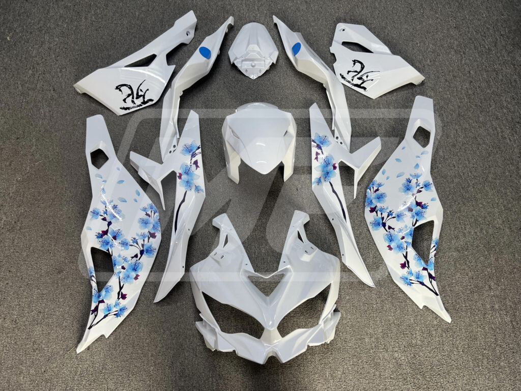 Kawasaki ZX4RR 2020-2025 Gloss White with Blue Cherry Blossom ABS Fairings | Monster Fairings