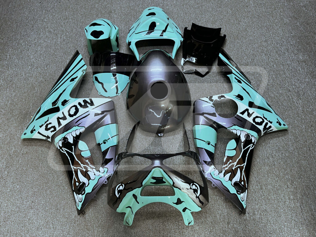 Kawasaki ZX6R 2003-2004 Gloss Gray & Teal Monster ABS Fairings | Monster Fairings