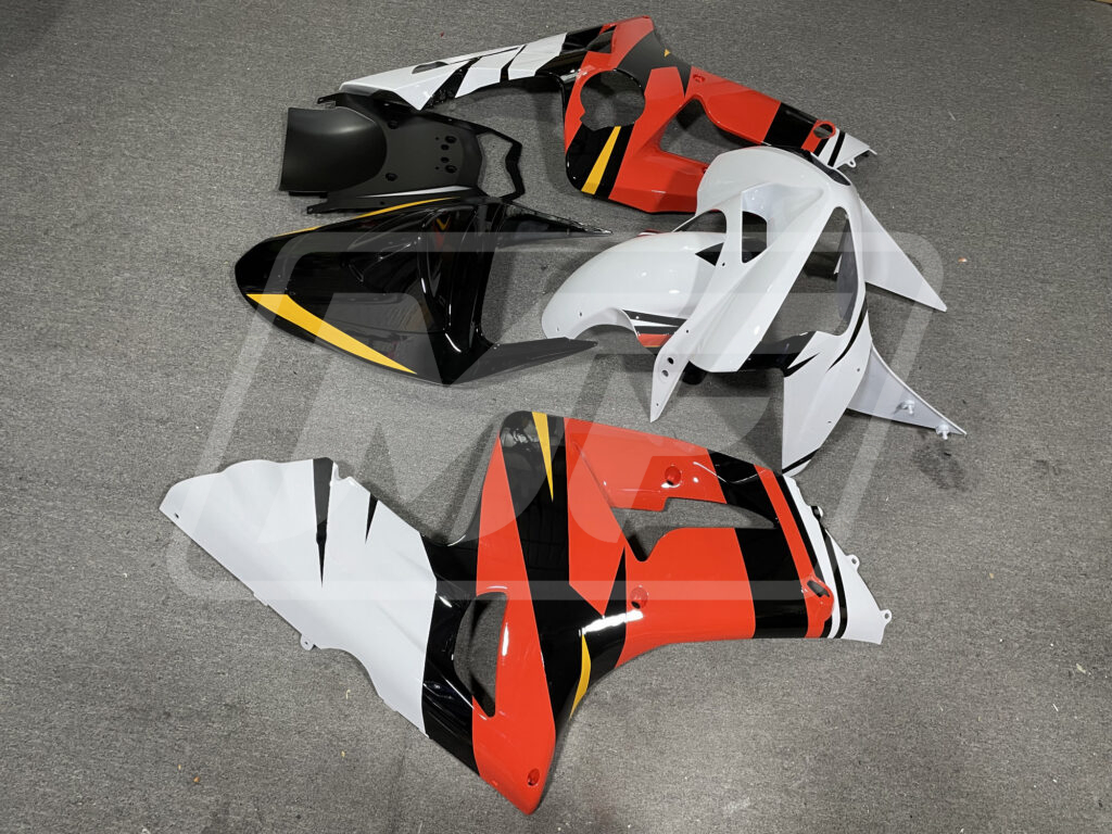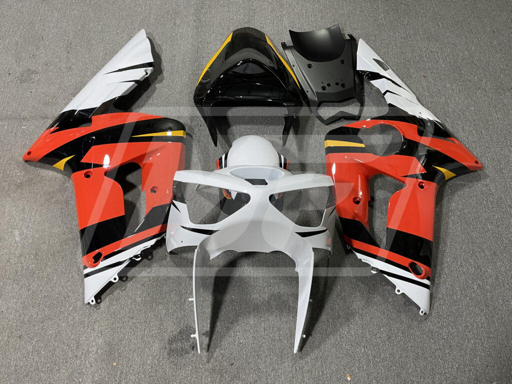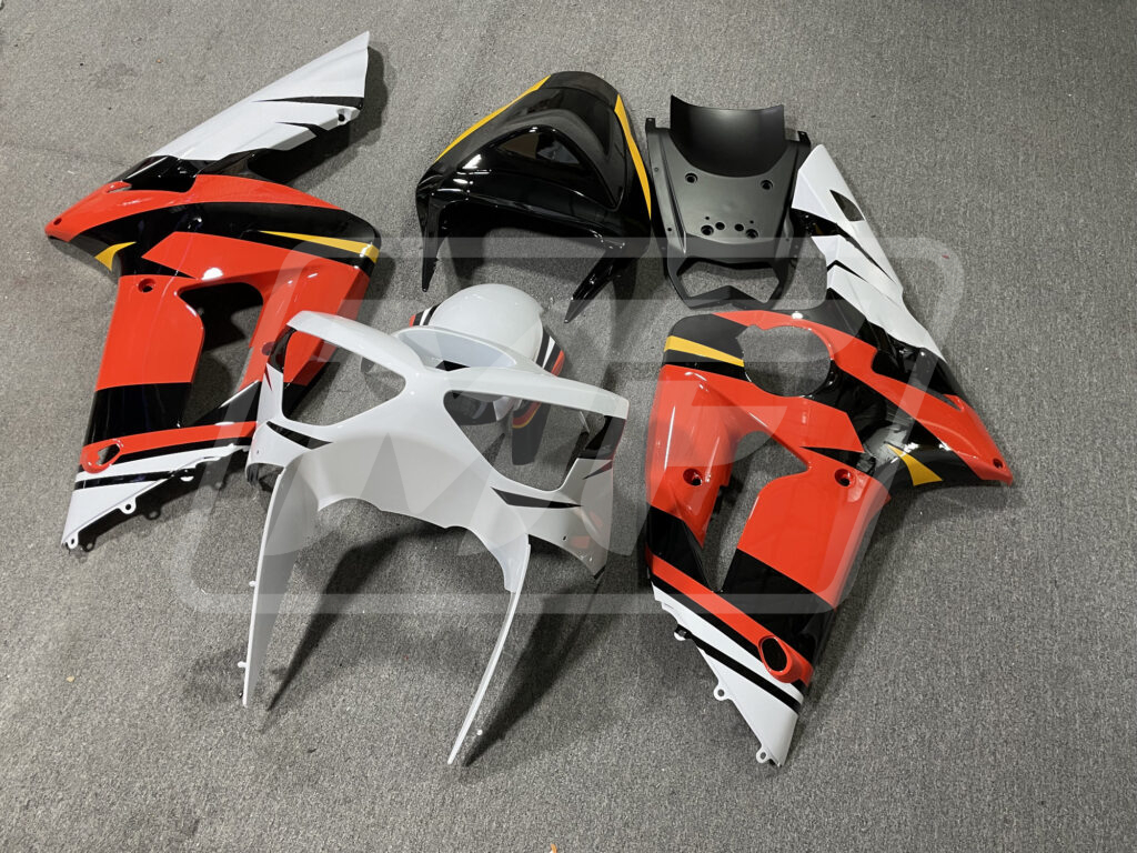 Kawasaki ZX6R 2003-2004 Gloss Orange with White ABS Fairings | Monster Fairings