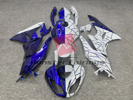 Kawasaki ZX6R 2009-2012 Gloss White & Blue With Purple Line Pattern Split ABS Fairings | Monster Fairings