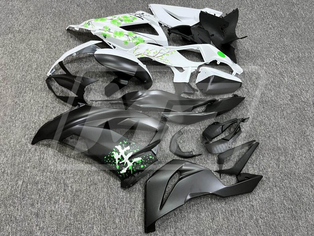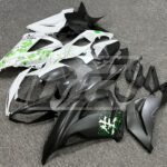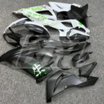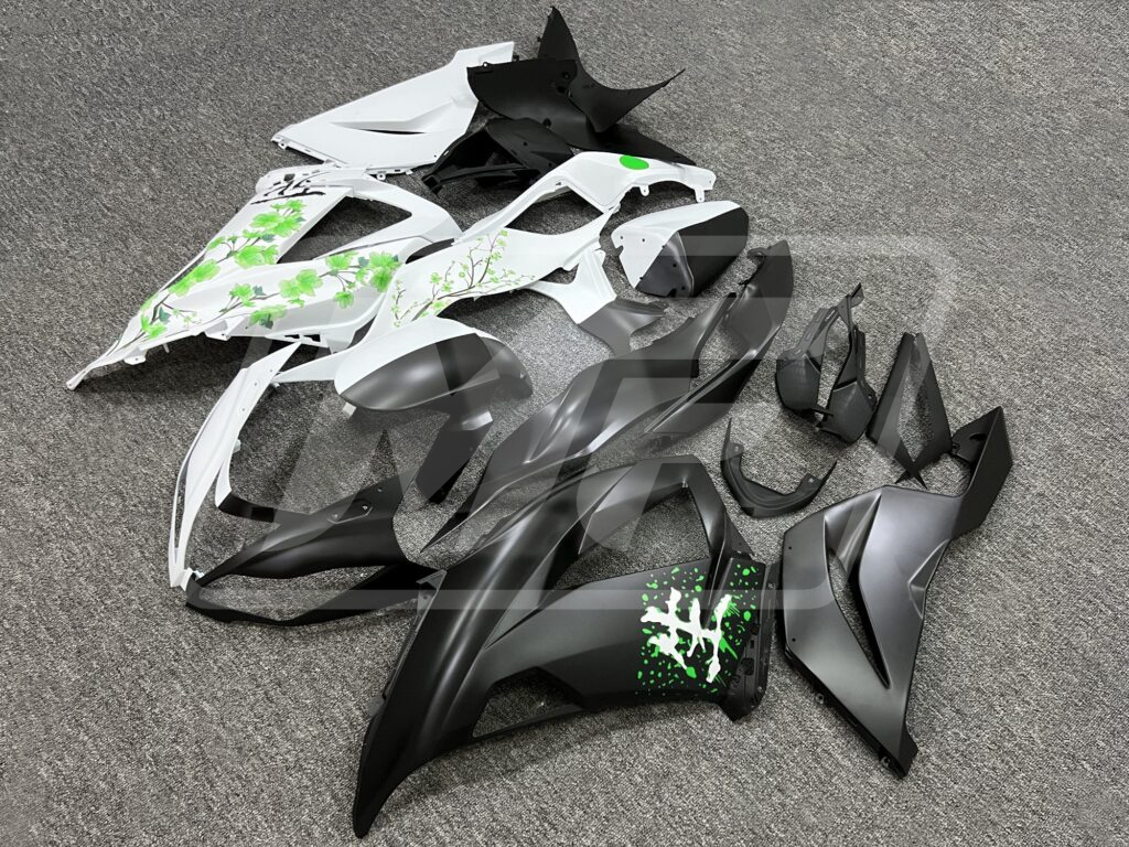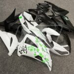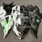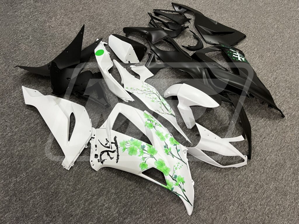 Kawasaki ZX6R 2013-2018 Matte Black & White Green Cherry Blossom Split ABS Fairings | Monster Fairings
