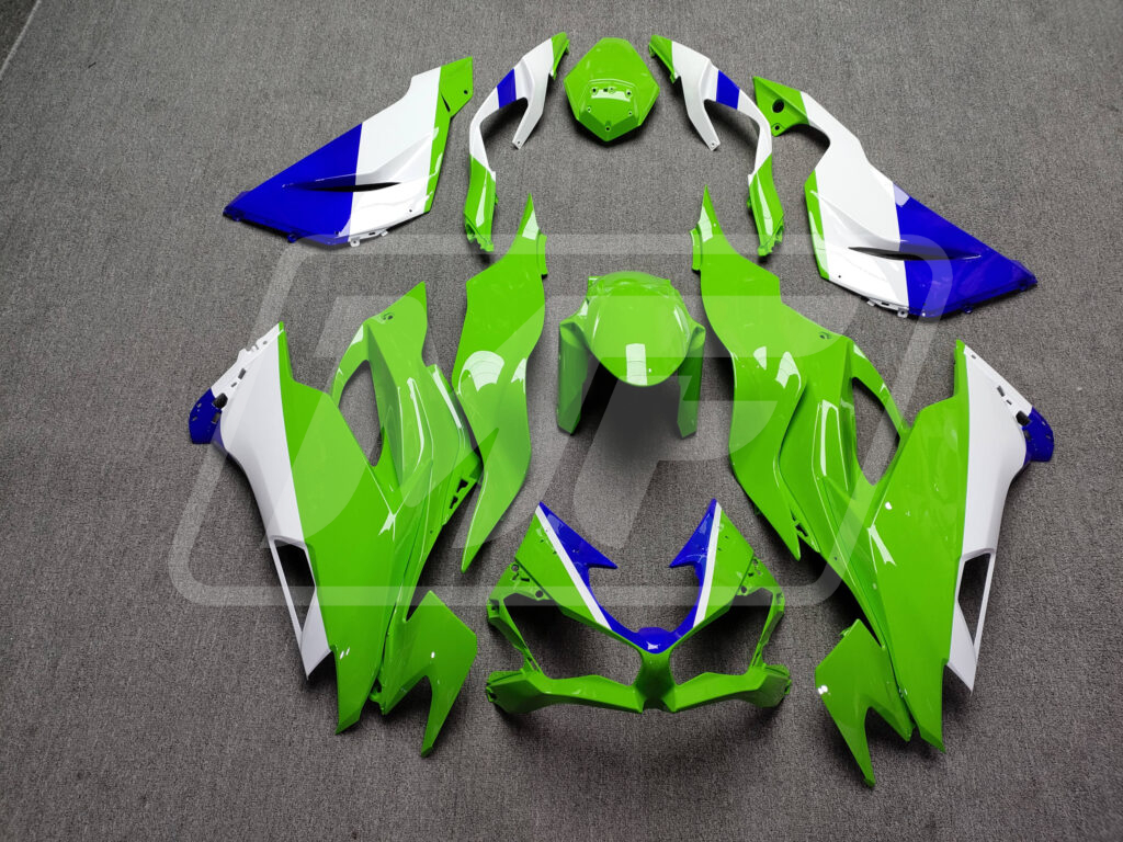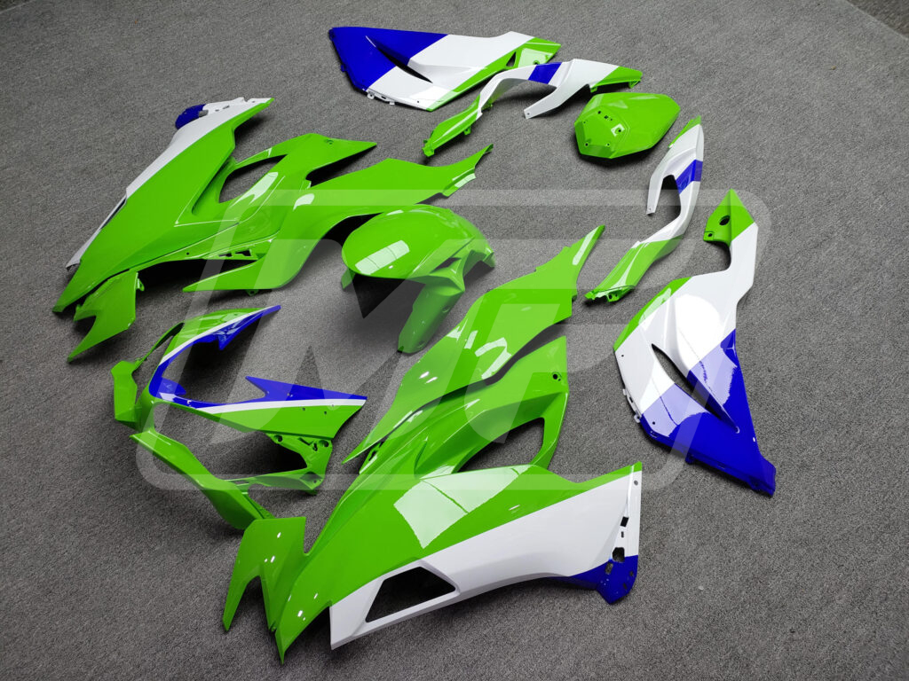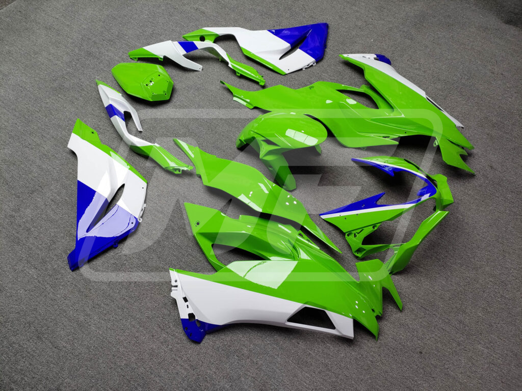 Kawasaki ZX6R 2019-2023 Bright Lime Green with Blue & White ABS Fairings | Monster Fairings