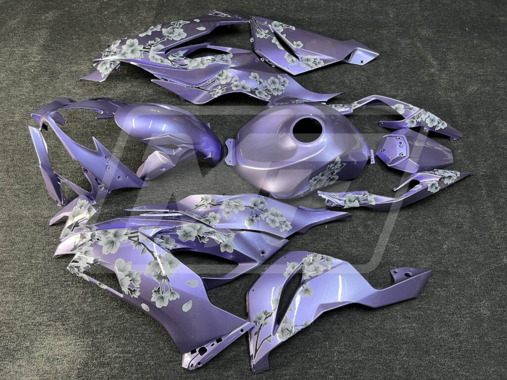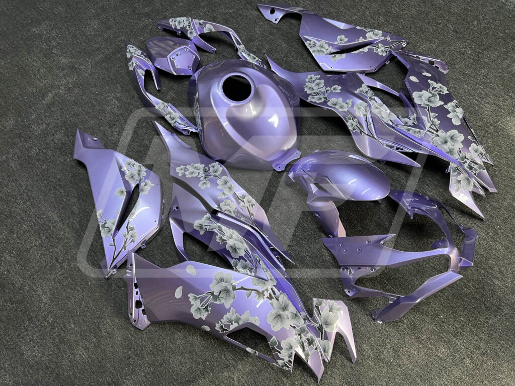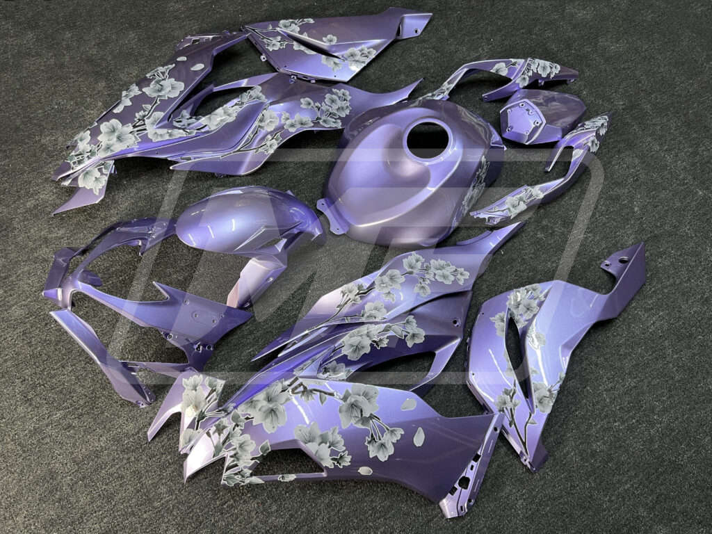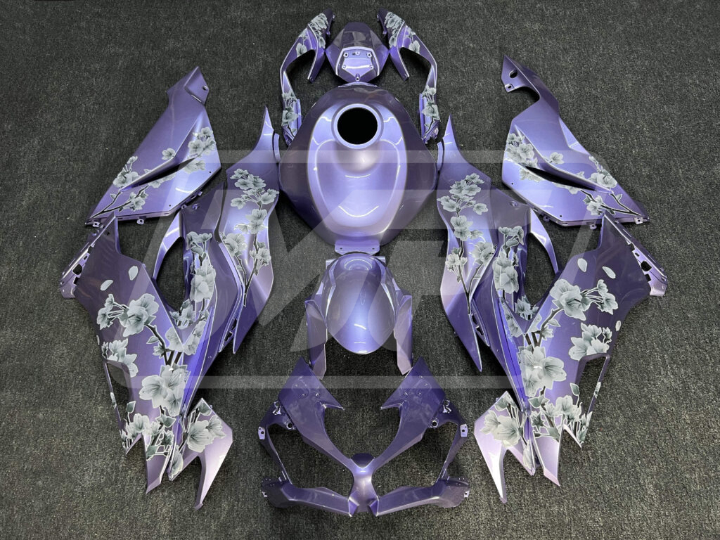 Kawasaki ZX6R 2019-2023 Gloss Lilac White Cherry Blossom ABS Fairings | Monster Fairings