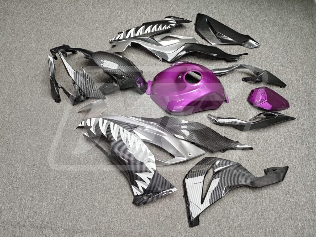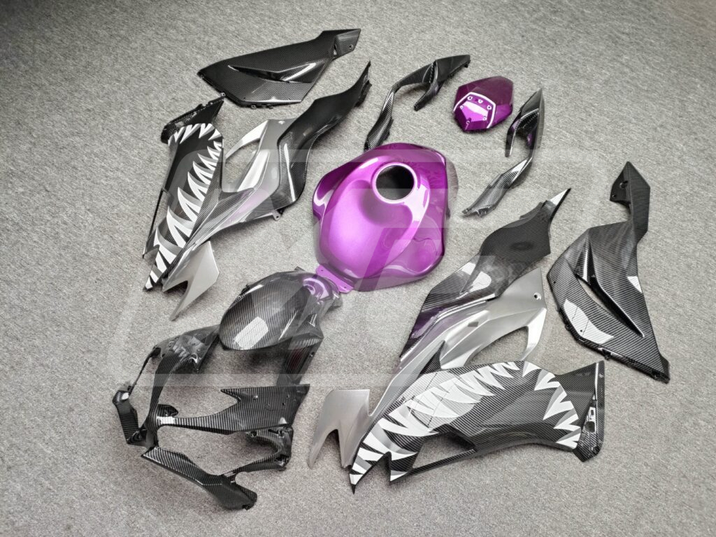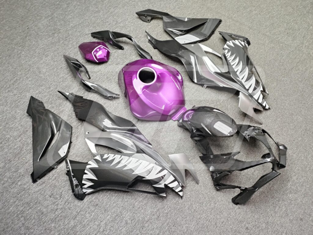 Kawasaki ZX6R 2019-2023 Gloss Purple Shark with Carbon Fiber Style ABS Fairings | Monster Fairings