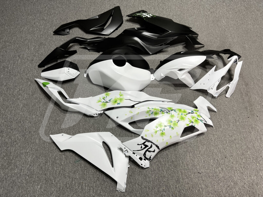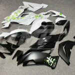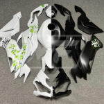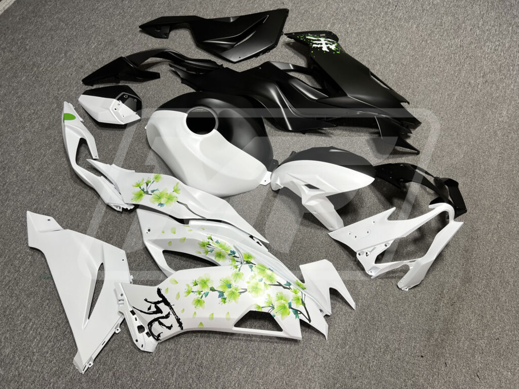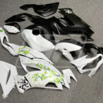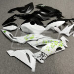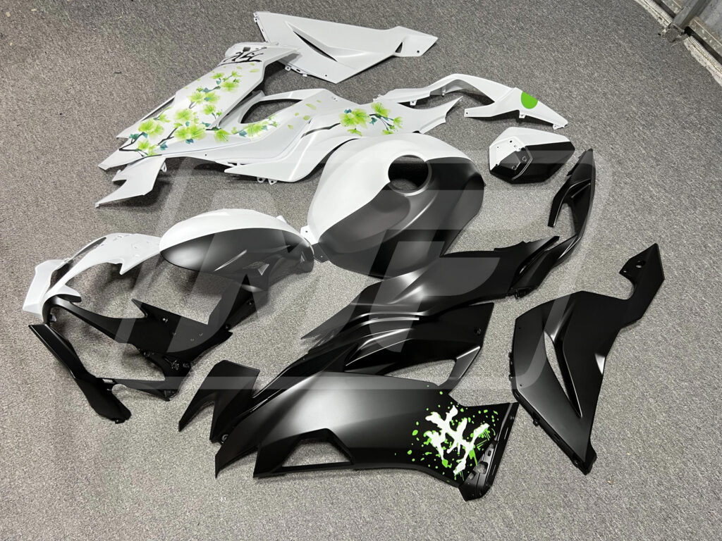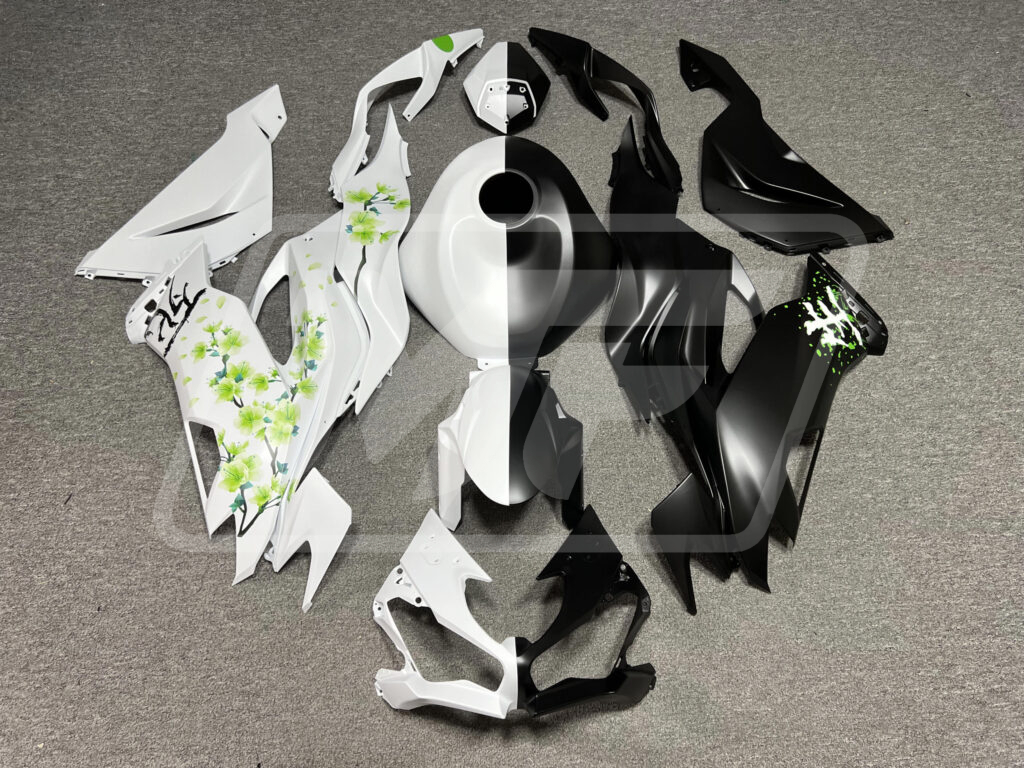 Kawasaki ZX6R 2019-2023 Matte Black & White Green Cherry Blossom Split ABS Fairings | Monster Fairings
