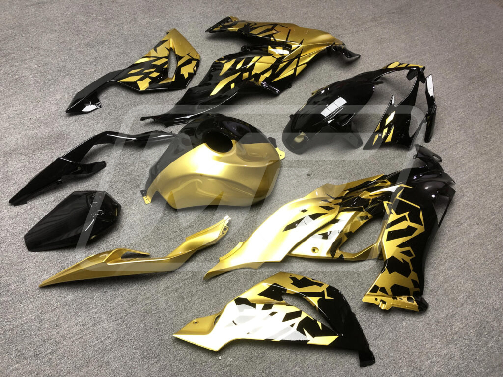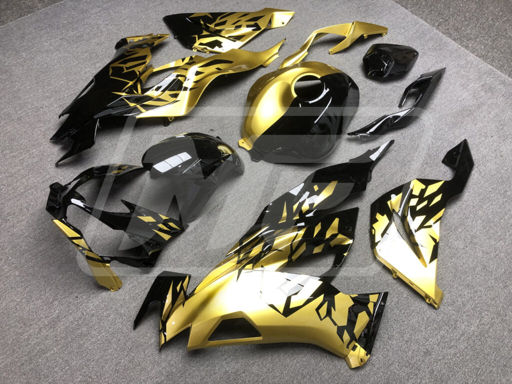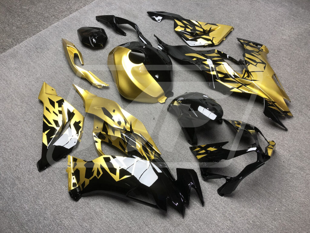 Kawasaki ZX6R 2019-2023 Gloss Gold & Black Shattered Split ABS Fairings | Monster Fairings