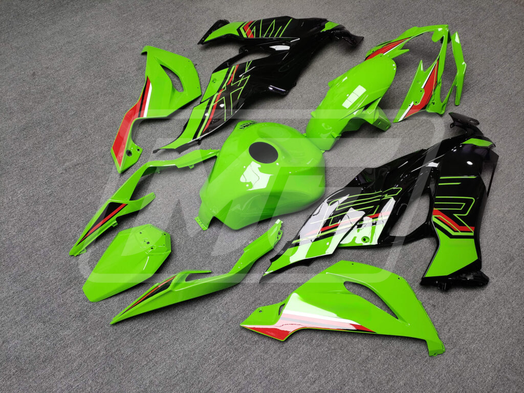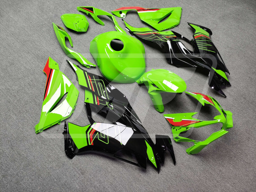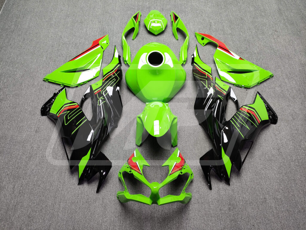 Kawasaki ZX6R 2019-2023 Gloss Green & Black with Red ABS Fairings | Monster Fairings
