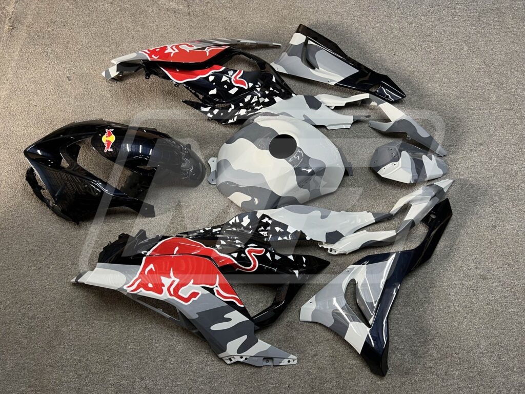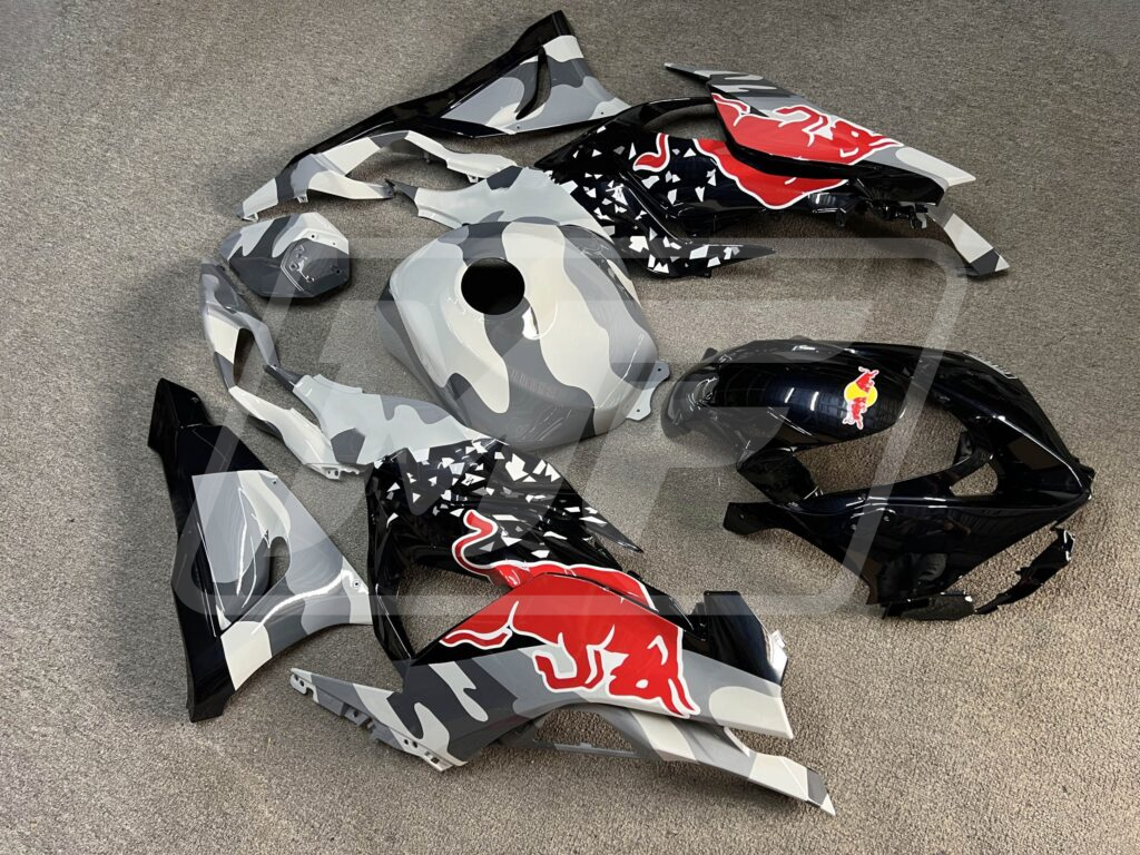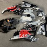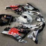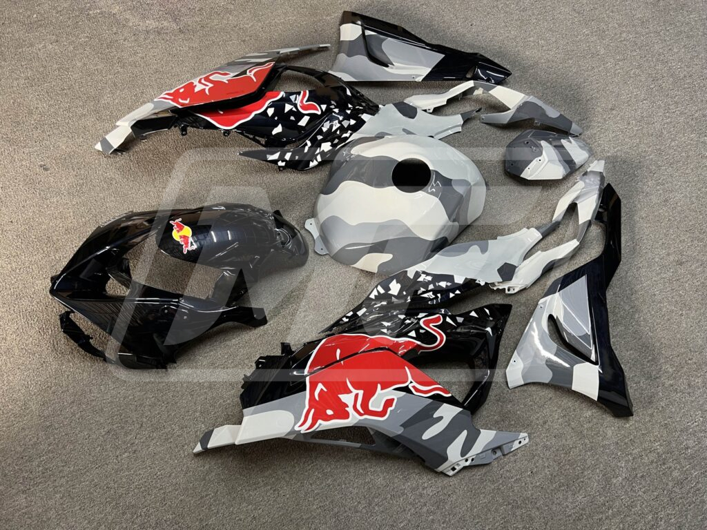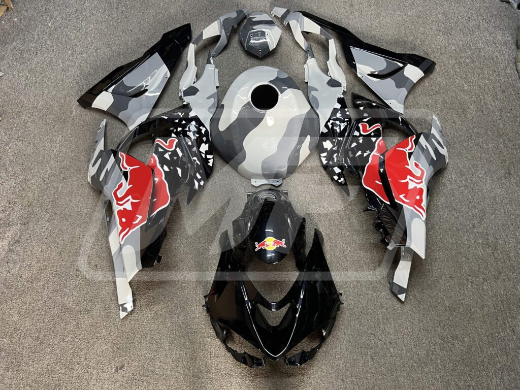 Kawasaki ZX6R 2024-2026 Gloss Black & Red with Gray Camo Bull ABS Fairings | Monster Fairings
