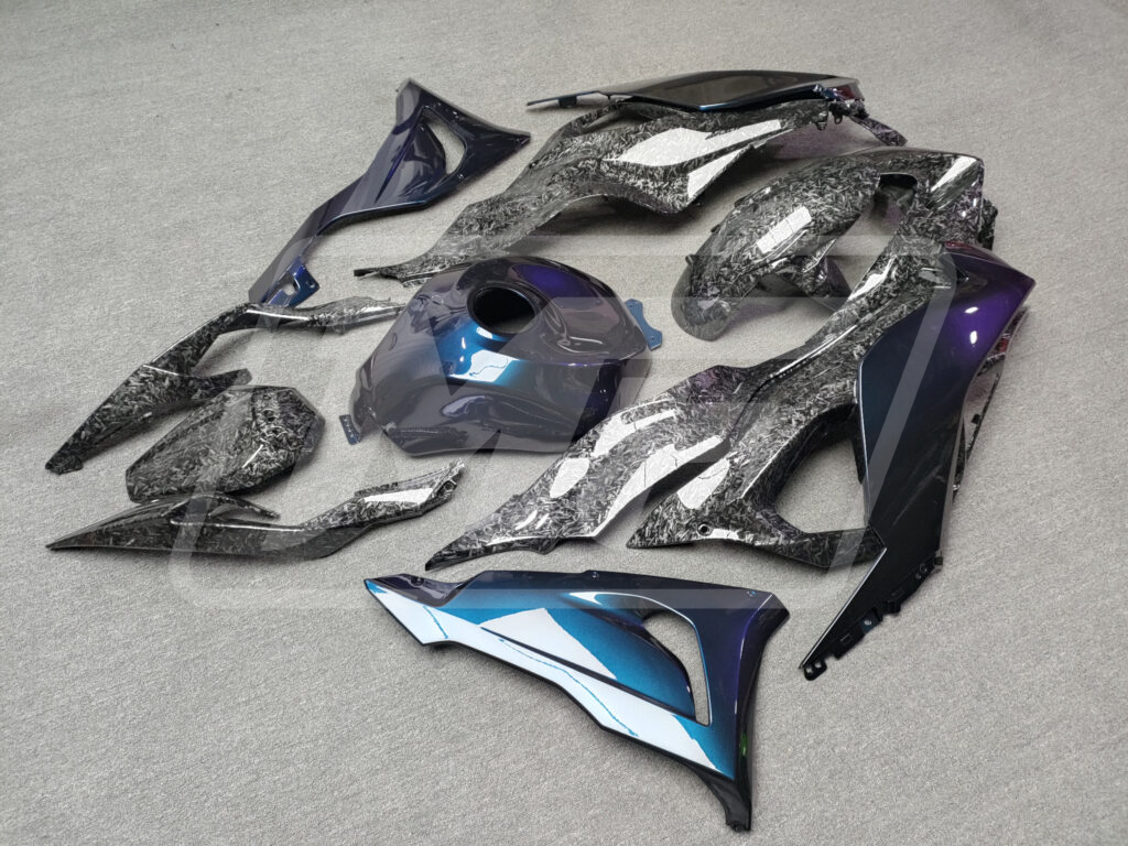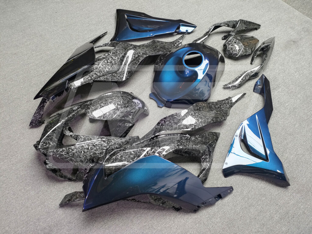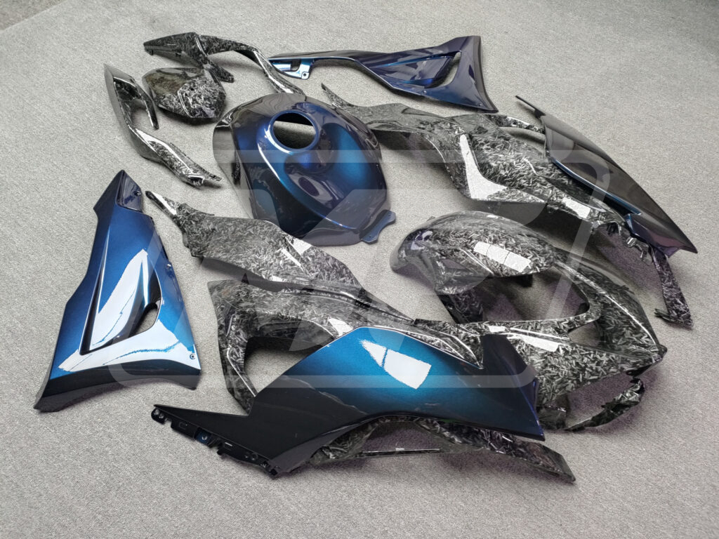 Kawasaki ZX6R 2024-2026 Gloss Blue Chameleon with Forged Carbon Fiber Style ABS Fairings | Monster Fairings