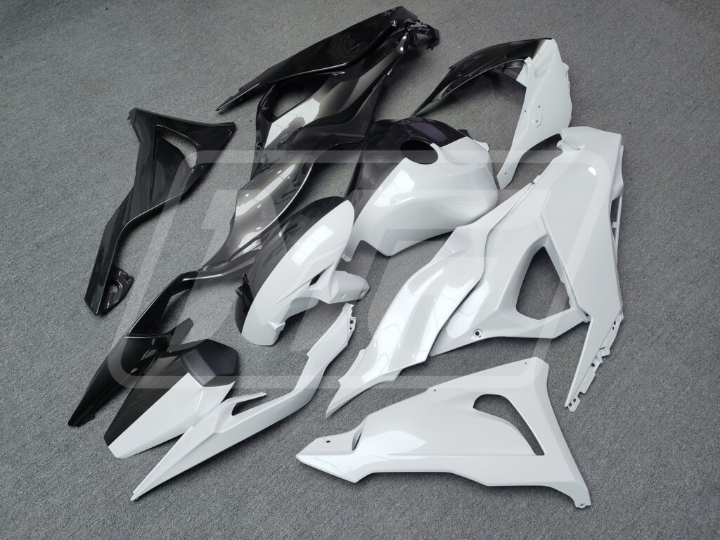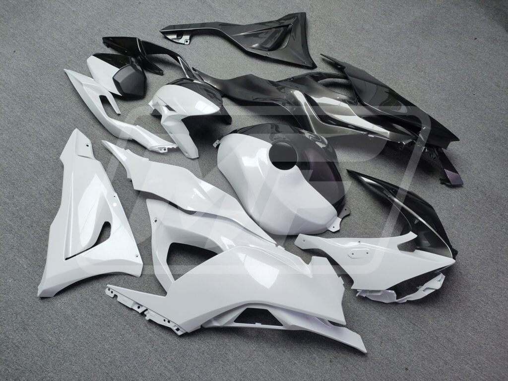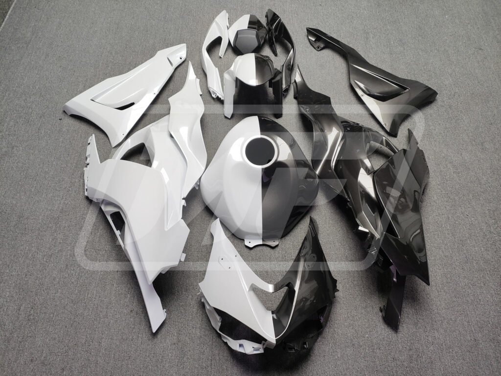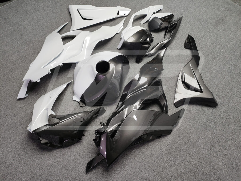 Kawasaki ZX6R 2024-2026 Gloss Metallic Black & White Split ABS Fairings | Monster Fairings