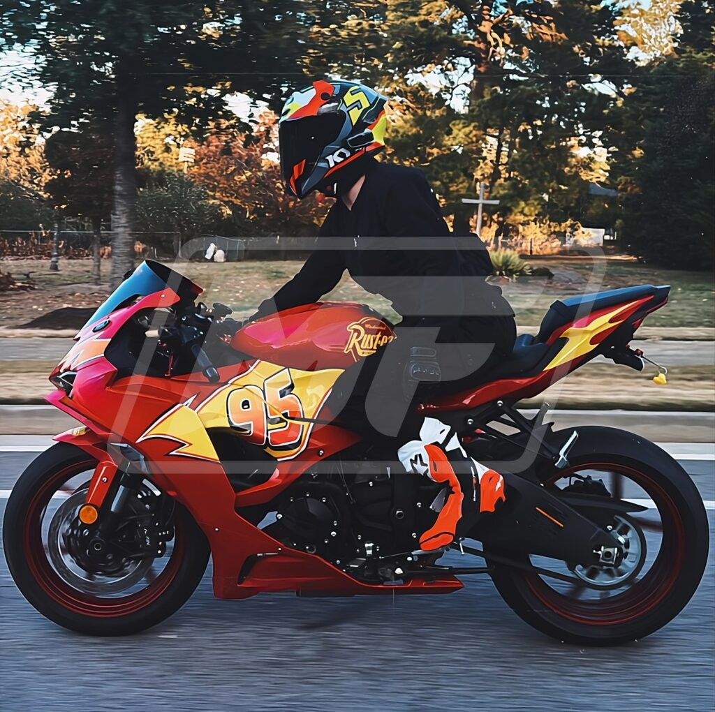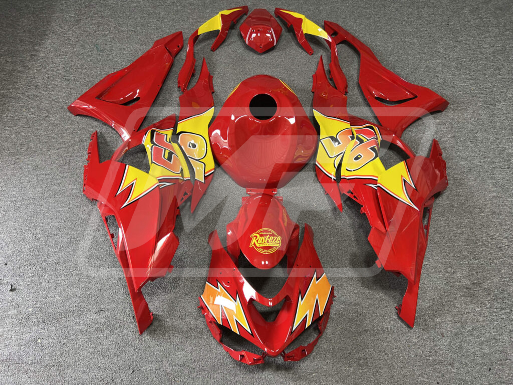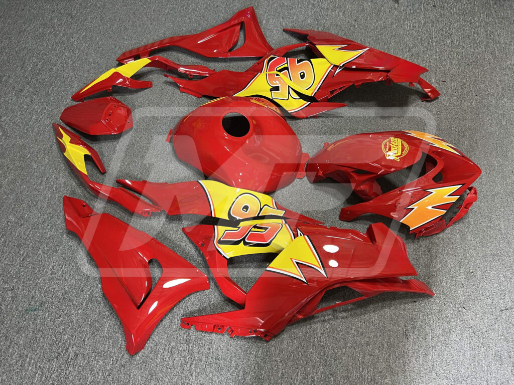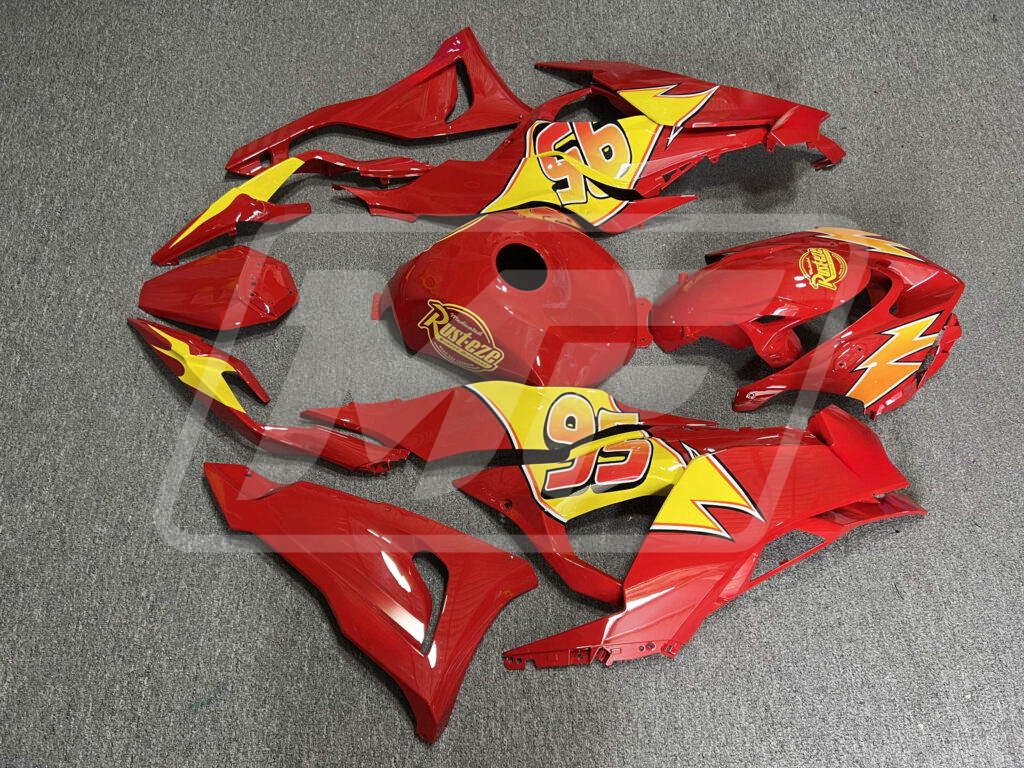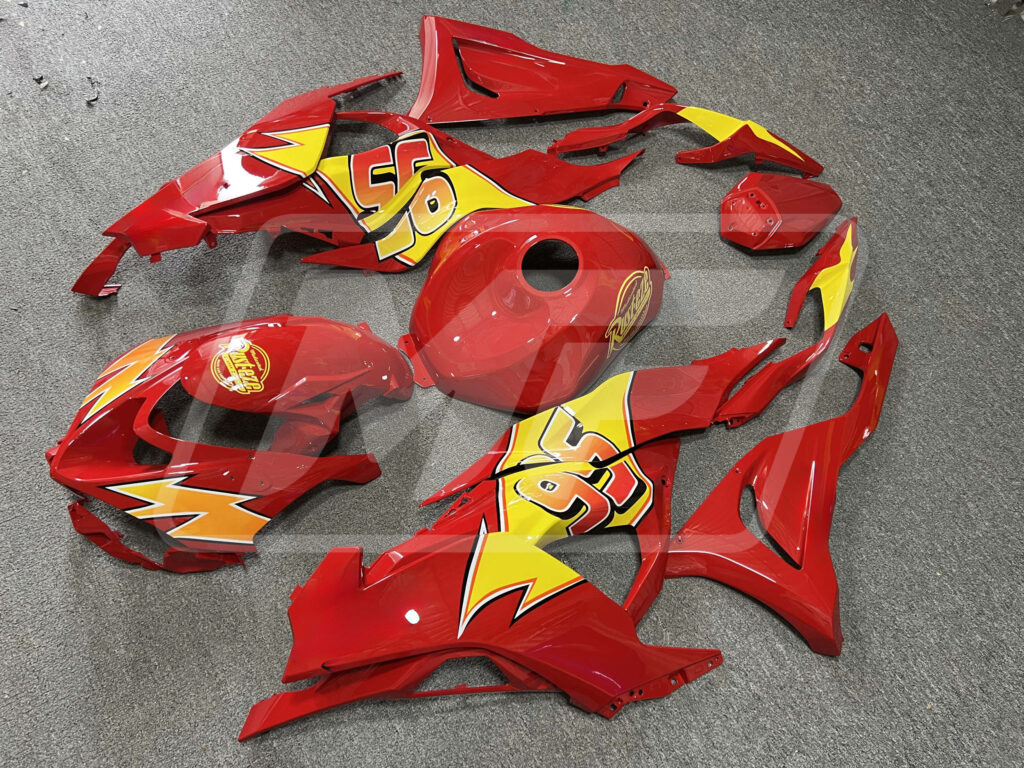 Kawasaki ZX6R 2024-2026 Gloss Red & Yellow Lightning McQueen ABS Fairings | Monster Fairings