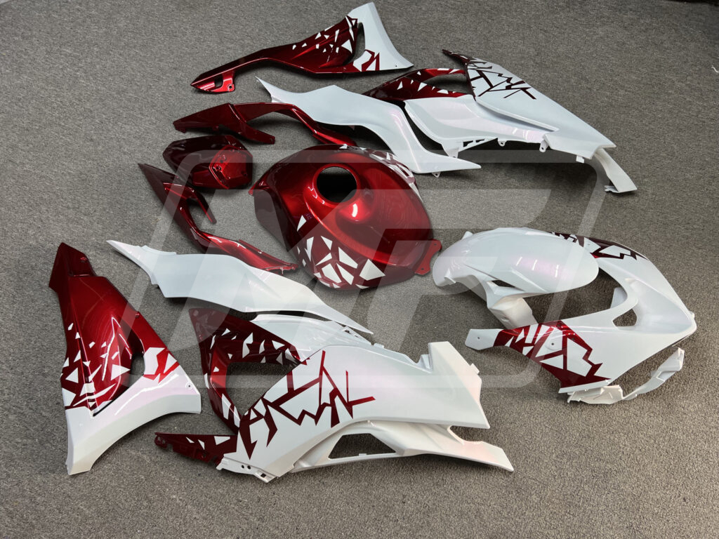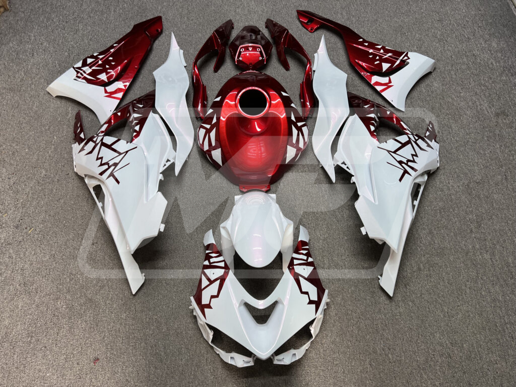 Kawasaki ZX6R 2024-2026 Gloss White & Candy Red Shattered ABS Fairings | Monster Fairings