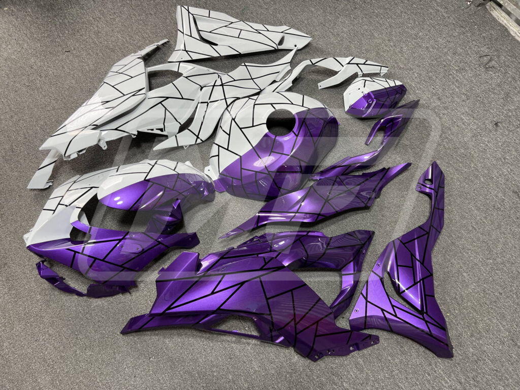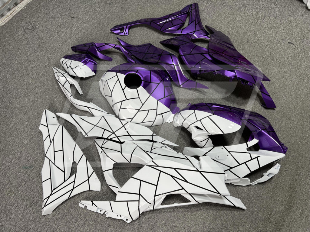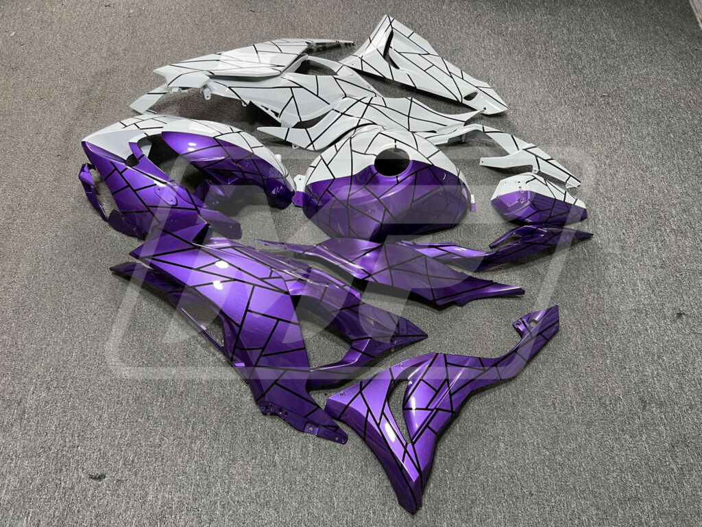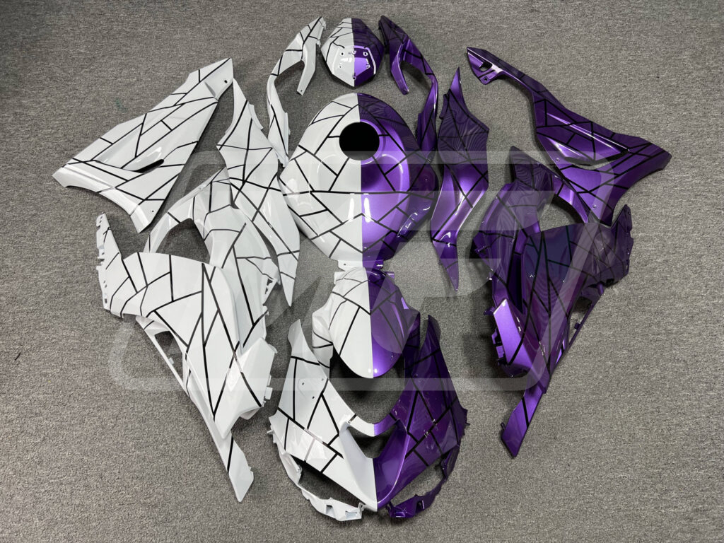 Kawasaki ZX6R 2024-2026 Gloss White & Purple Split Pattern ABS Fairings | Monster Fairings