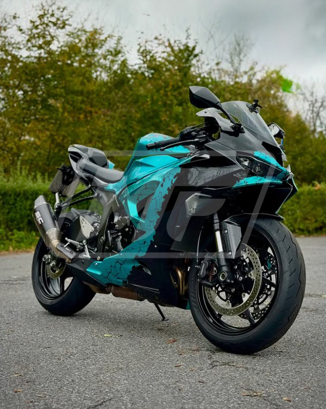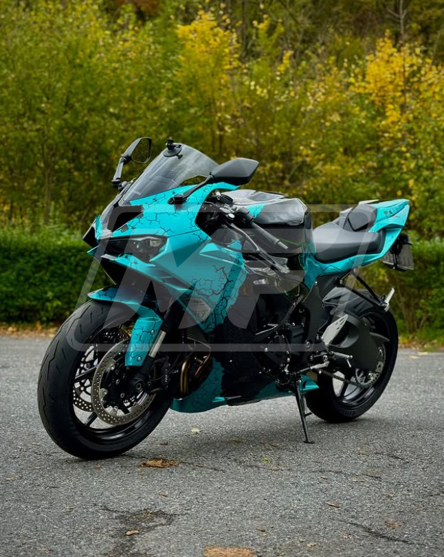 Kawasaki ZX6R 2024-2026 Gloss Black & Cyan Wreckage ABS Fairings | Monster Fairings