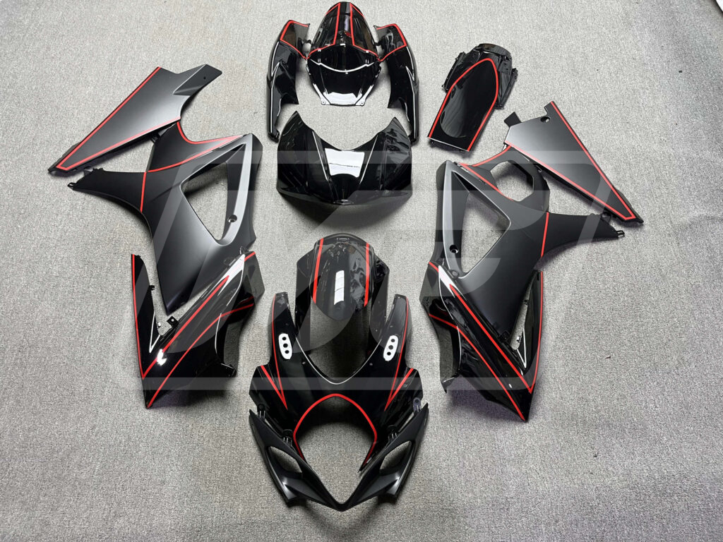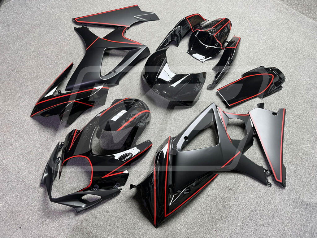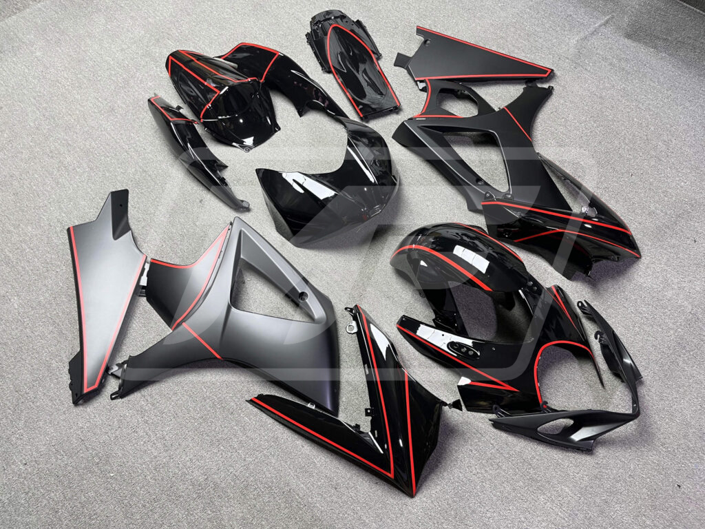(IN STOCK) Suzuki GSXR 1000 2007-2008 Gloss & Matte Black with Red ABS Fairings | Monster Fairings