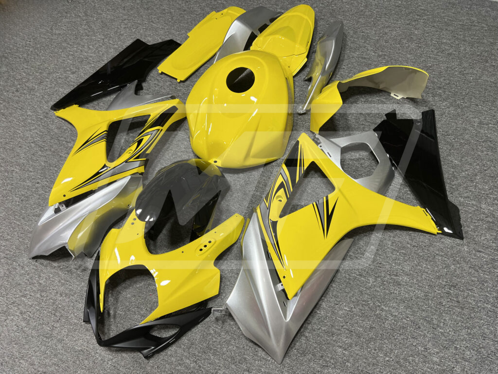 Suzuki GSXR 1000 2007-2008 Gloss Yellow & Silver with Black OEM ABS Fairings | Monster Fairings