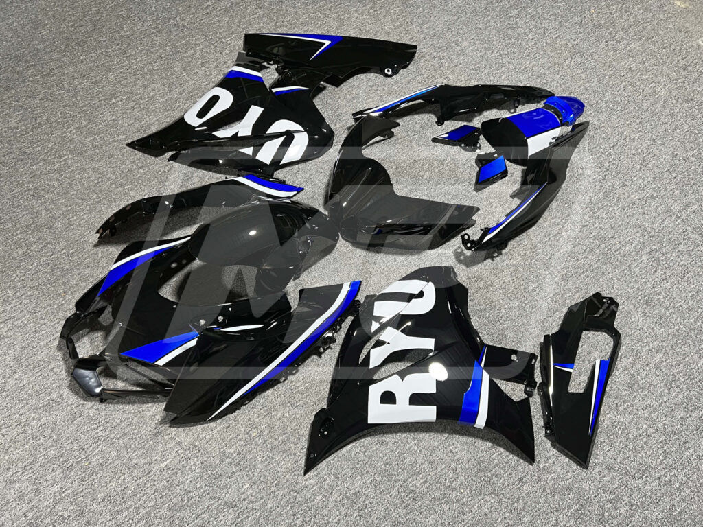 Suzuki GSXR 1000 2017-2025 Gloss Black & Blue with White ABS Fairings | Monster Fairings