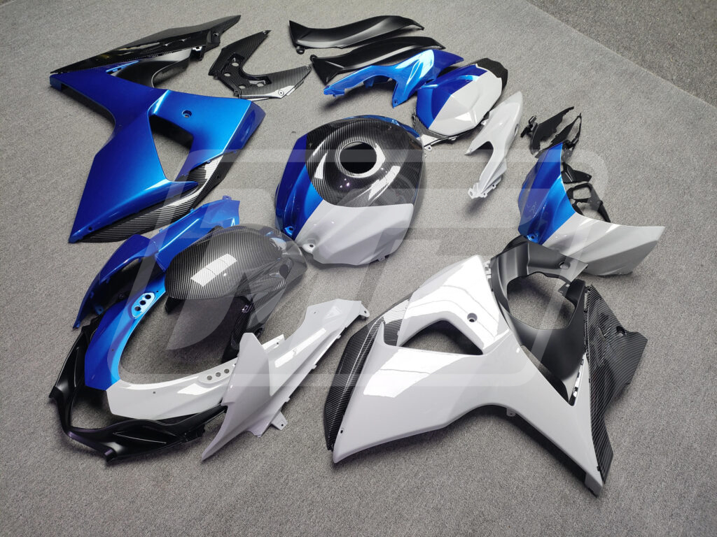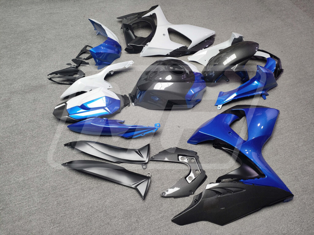 Suzuki GSXR 1000 2009-2016 Gloss Blue & Nardo Gray with Carbon Fiber Style Split ABS Fairings | Monster Fairings